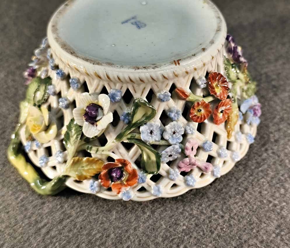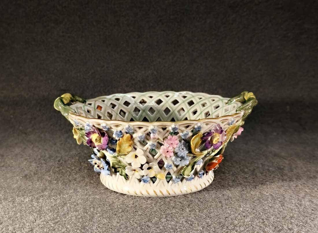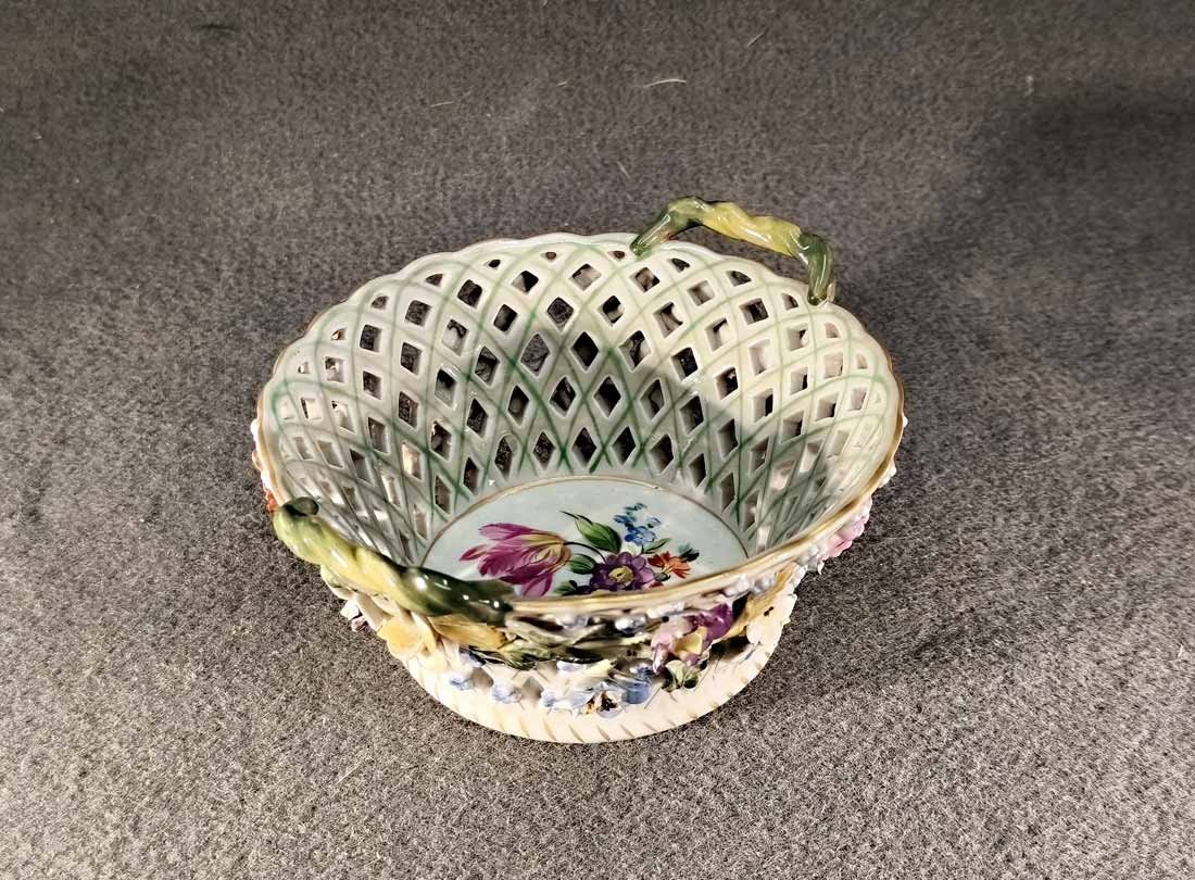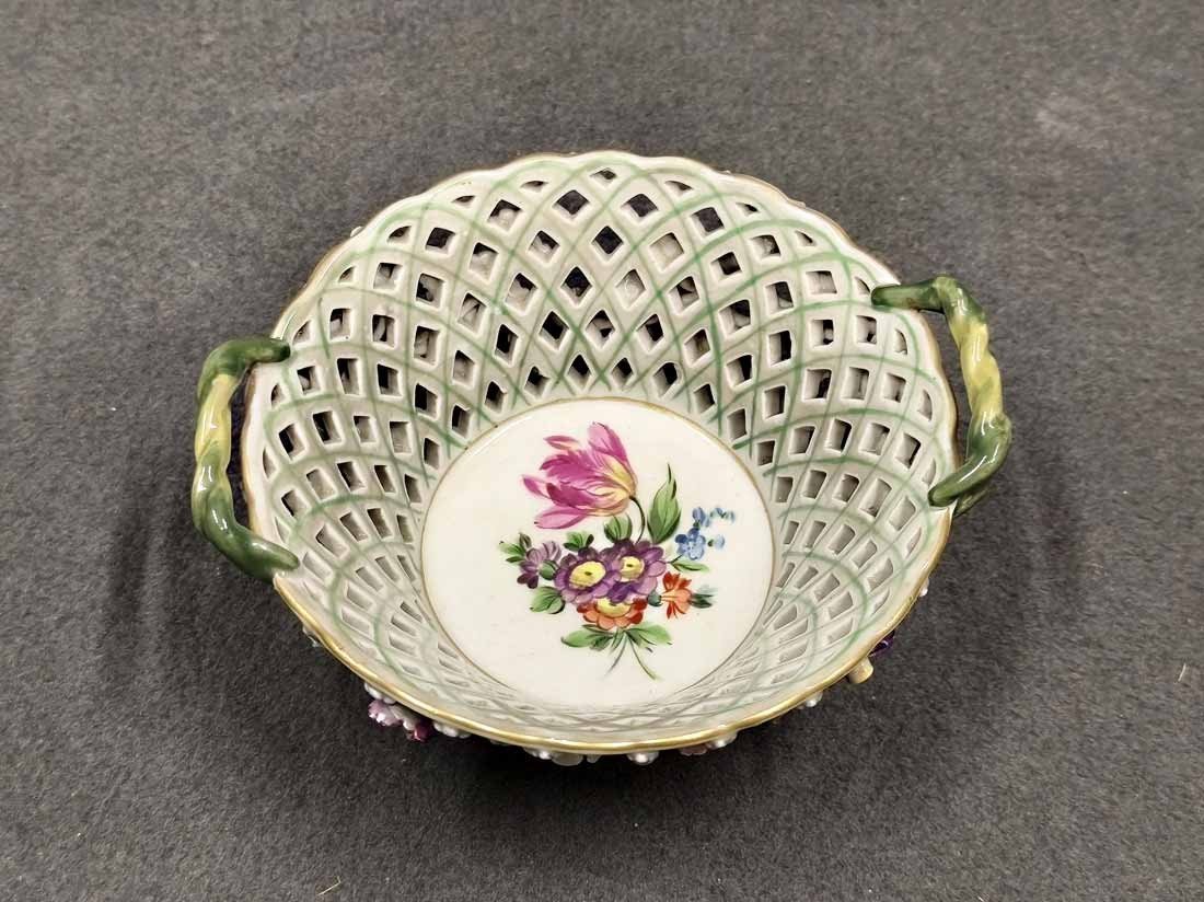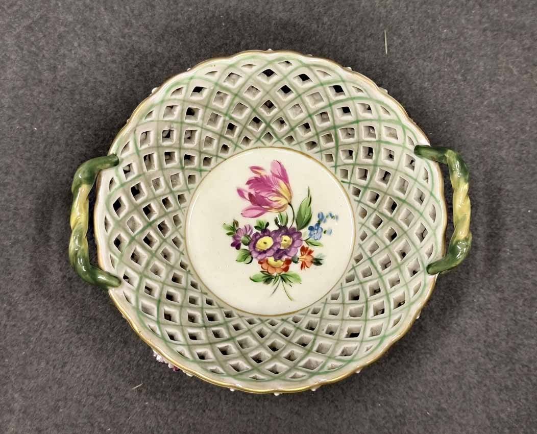 Res.! Sächs. Porz. Manufaktur Dresden, Korbschale mit Blütenbesatz,