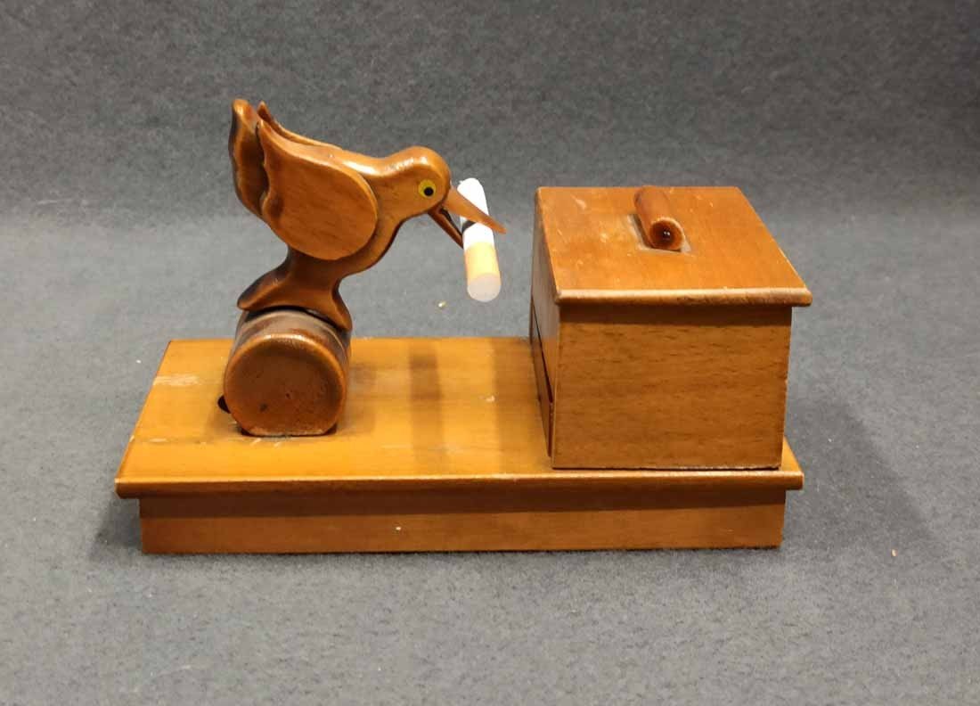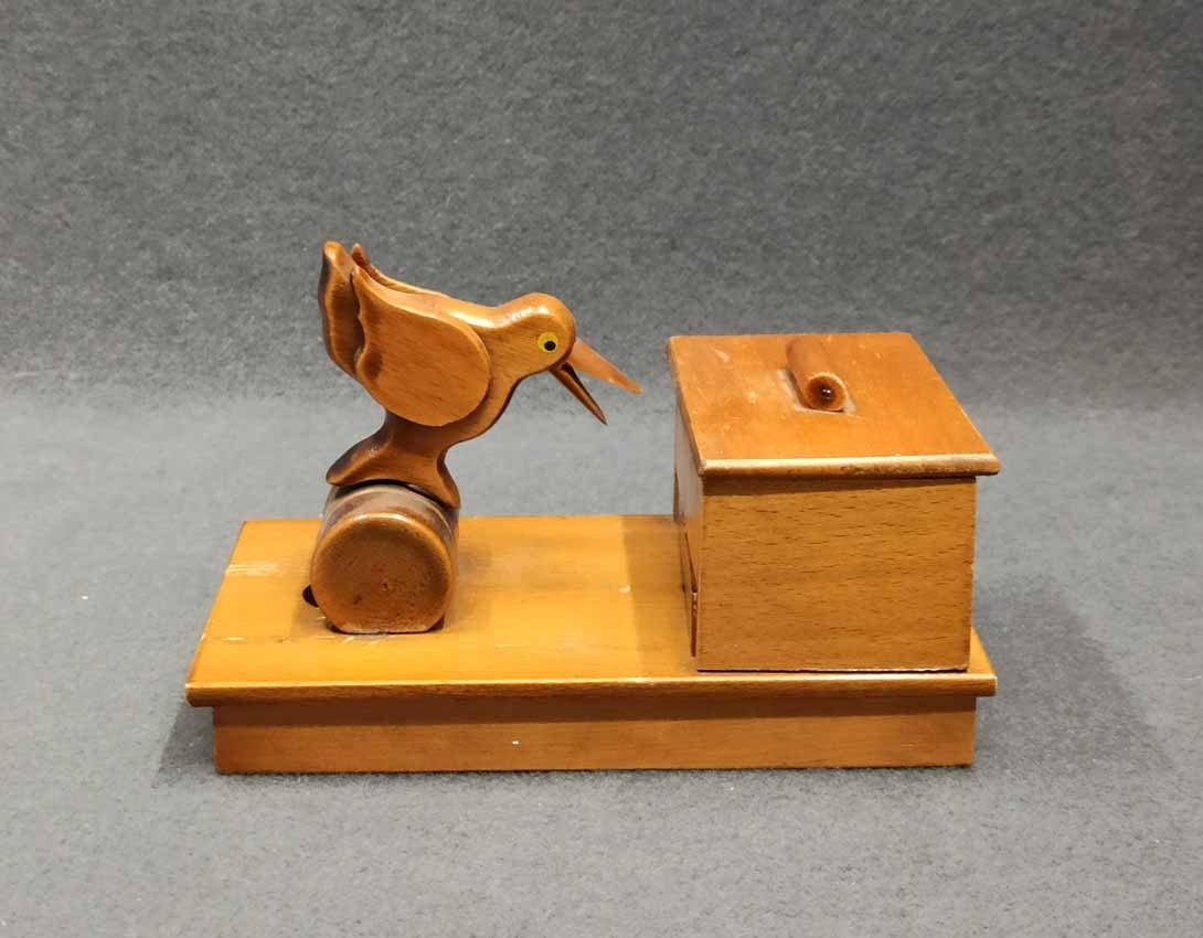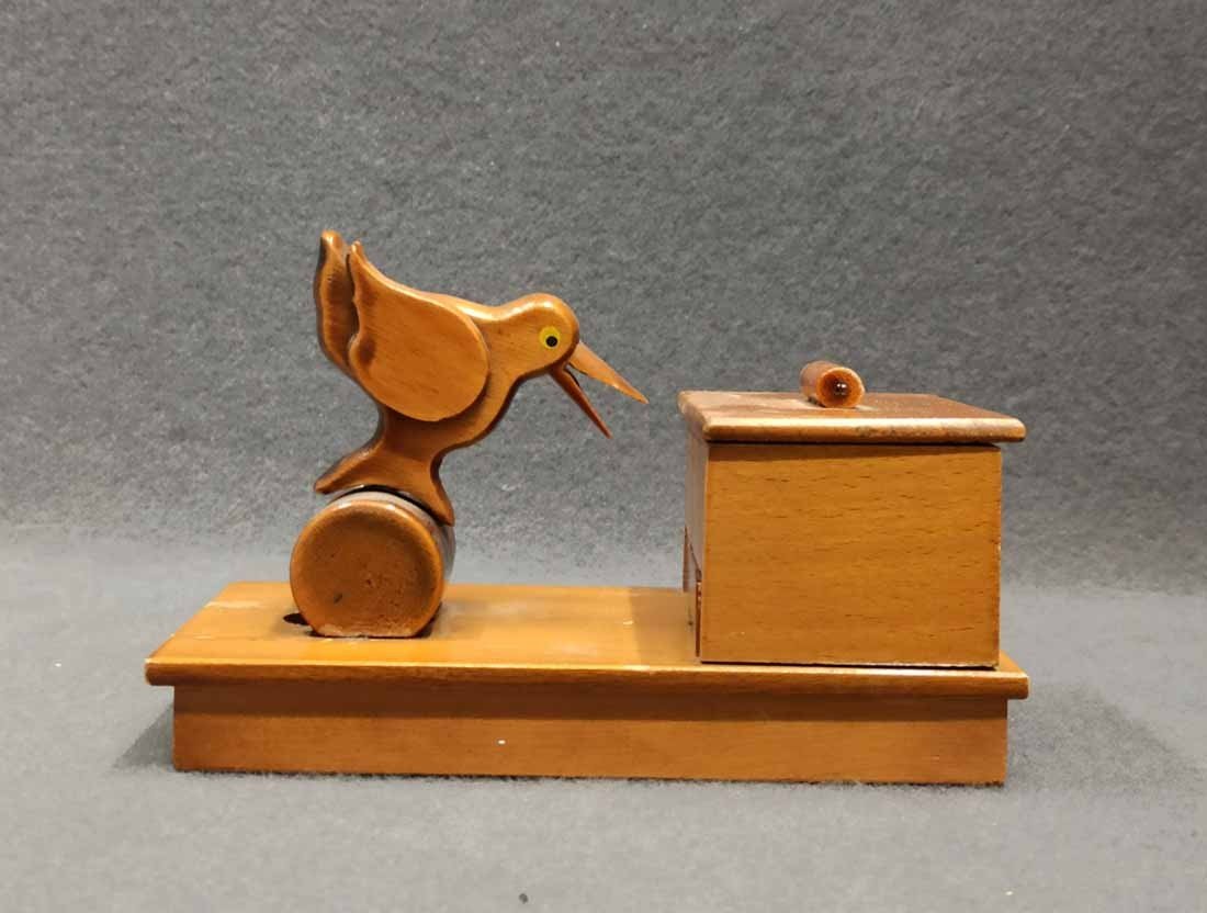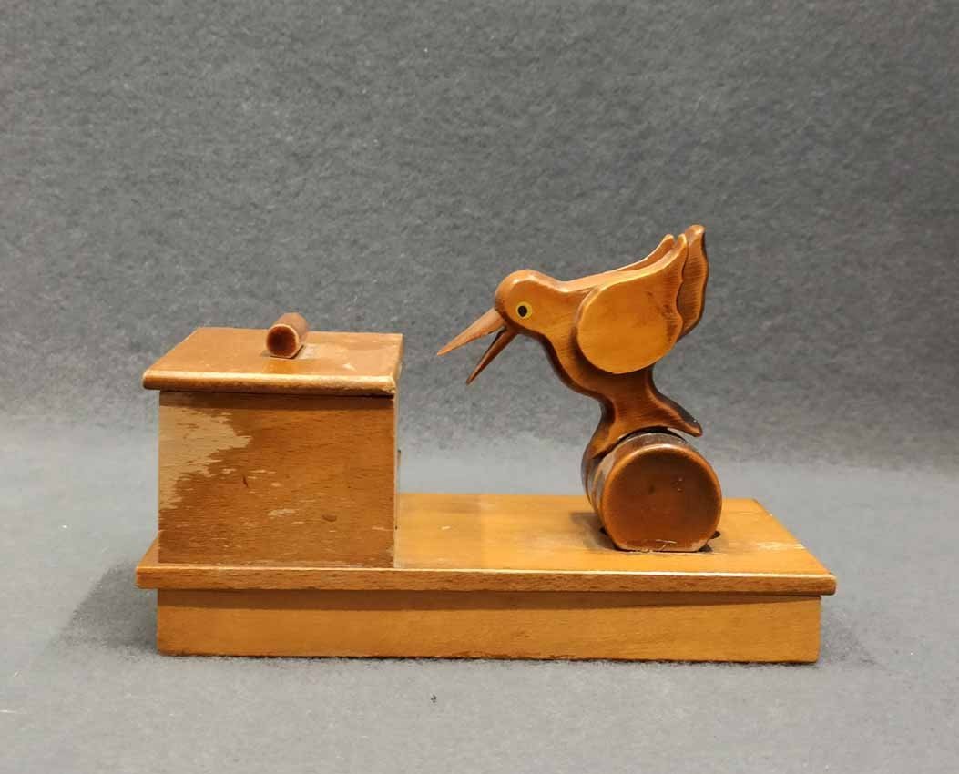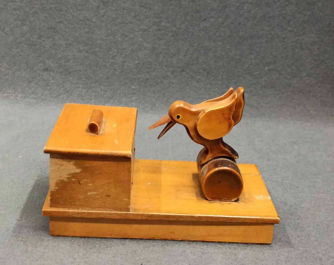 Zigarettenspender, Holz mit Vogel, Pickvogelmechanik