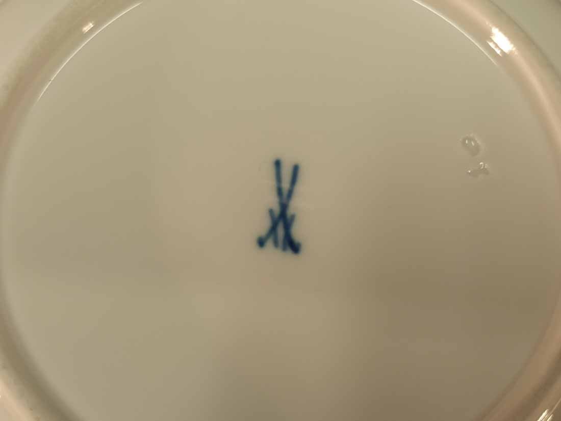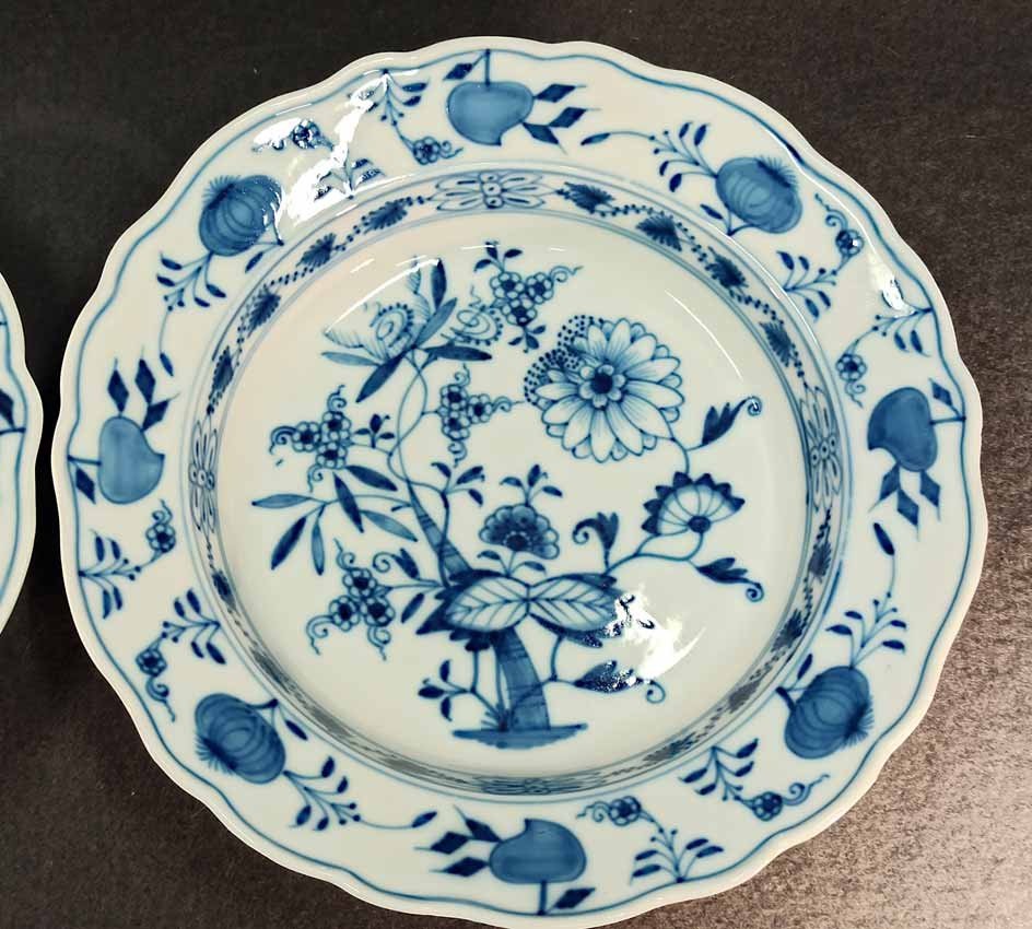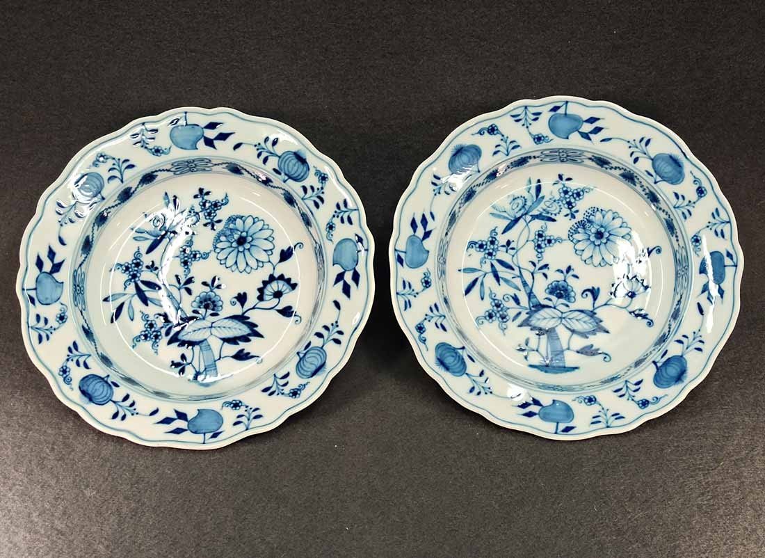 Meissen, 2x tiefe Teller, Suppenteller alte Teller vor 1880, Knaufschwerter. Sehr guter Zustand, D. 24 cm.