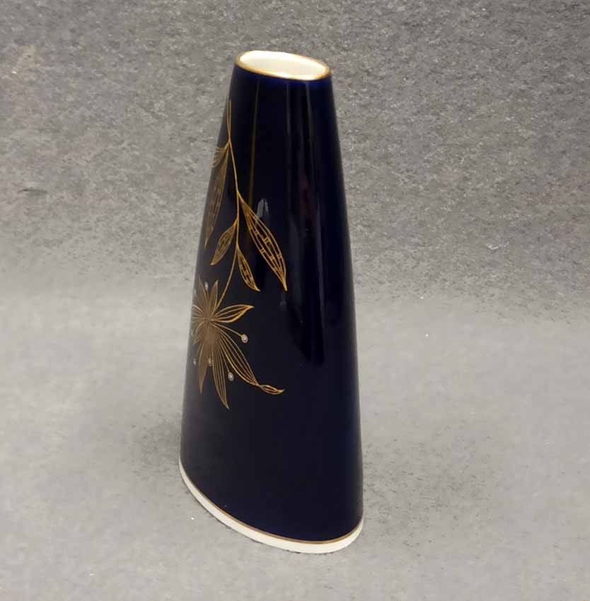 Vase, kobaltblau mit Golddekor, Thüringen, Weimar Porzellan um 1960. Sehr guter Zustand, H. 15,5 cm.
