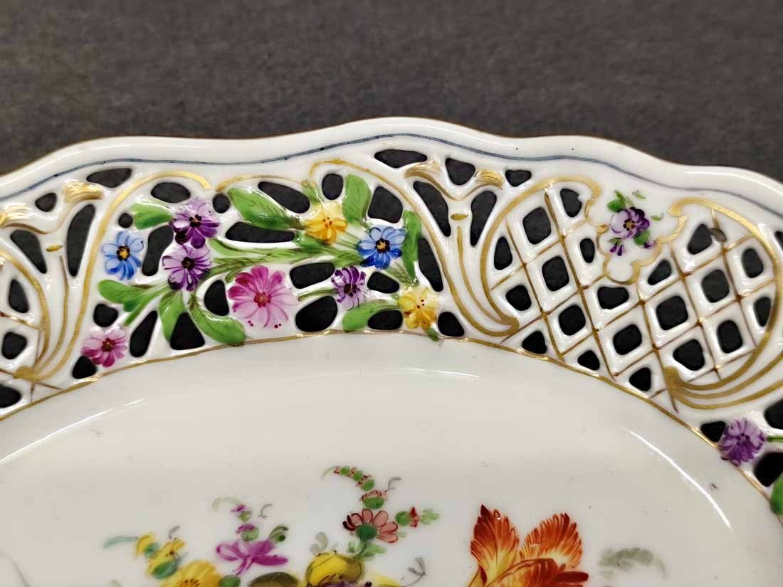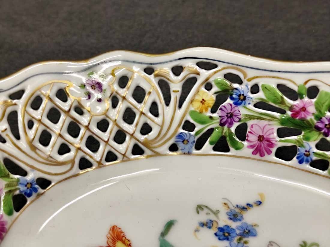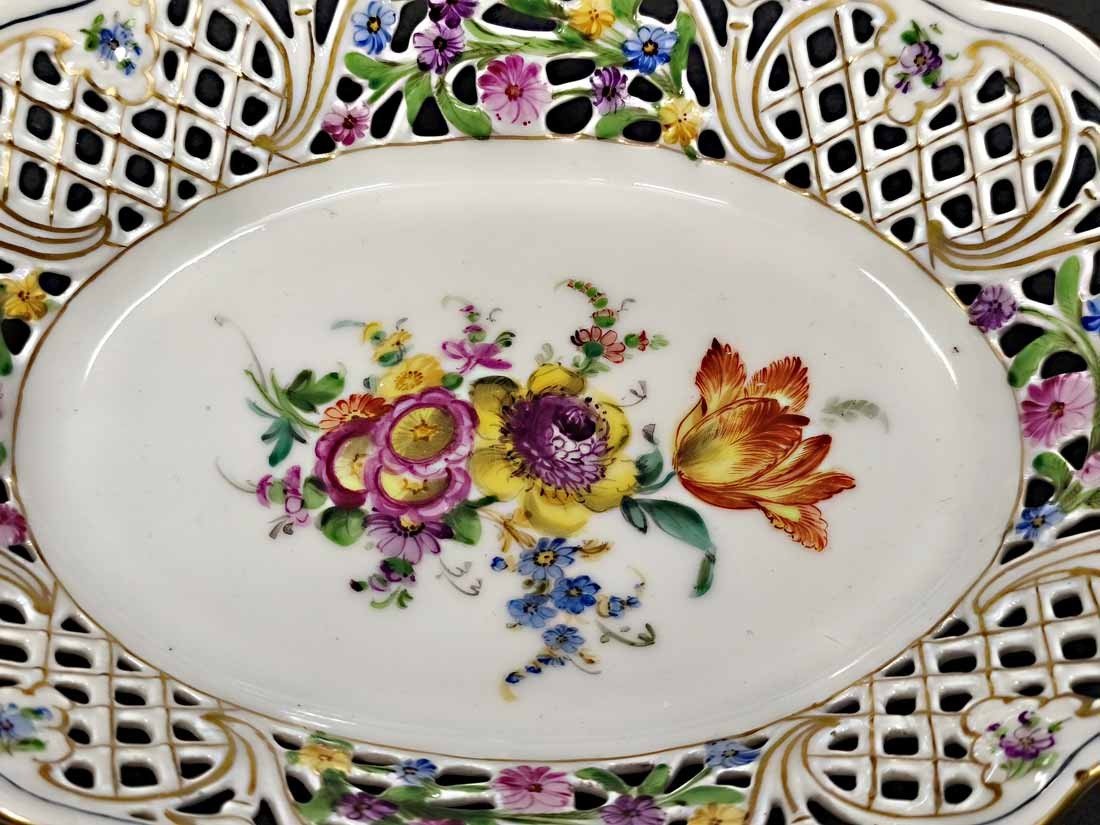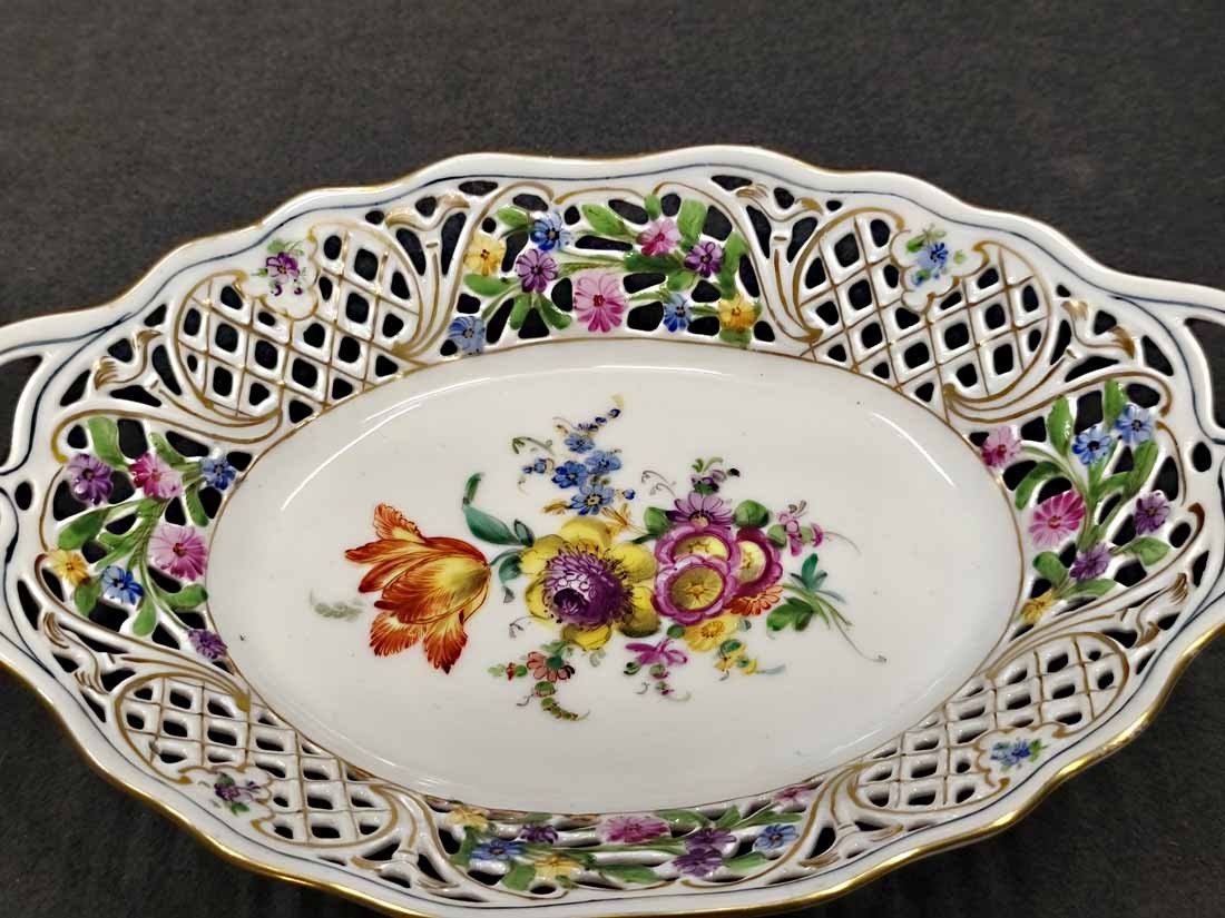 Schale Korb mit durchbrochenem Blumenrand und Blumenmalerei, verm.Sächs.Porz.Manufaktur Dresden