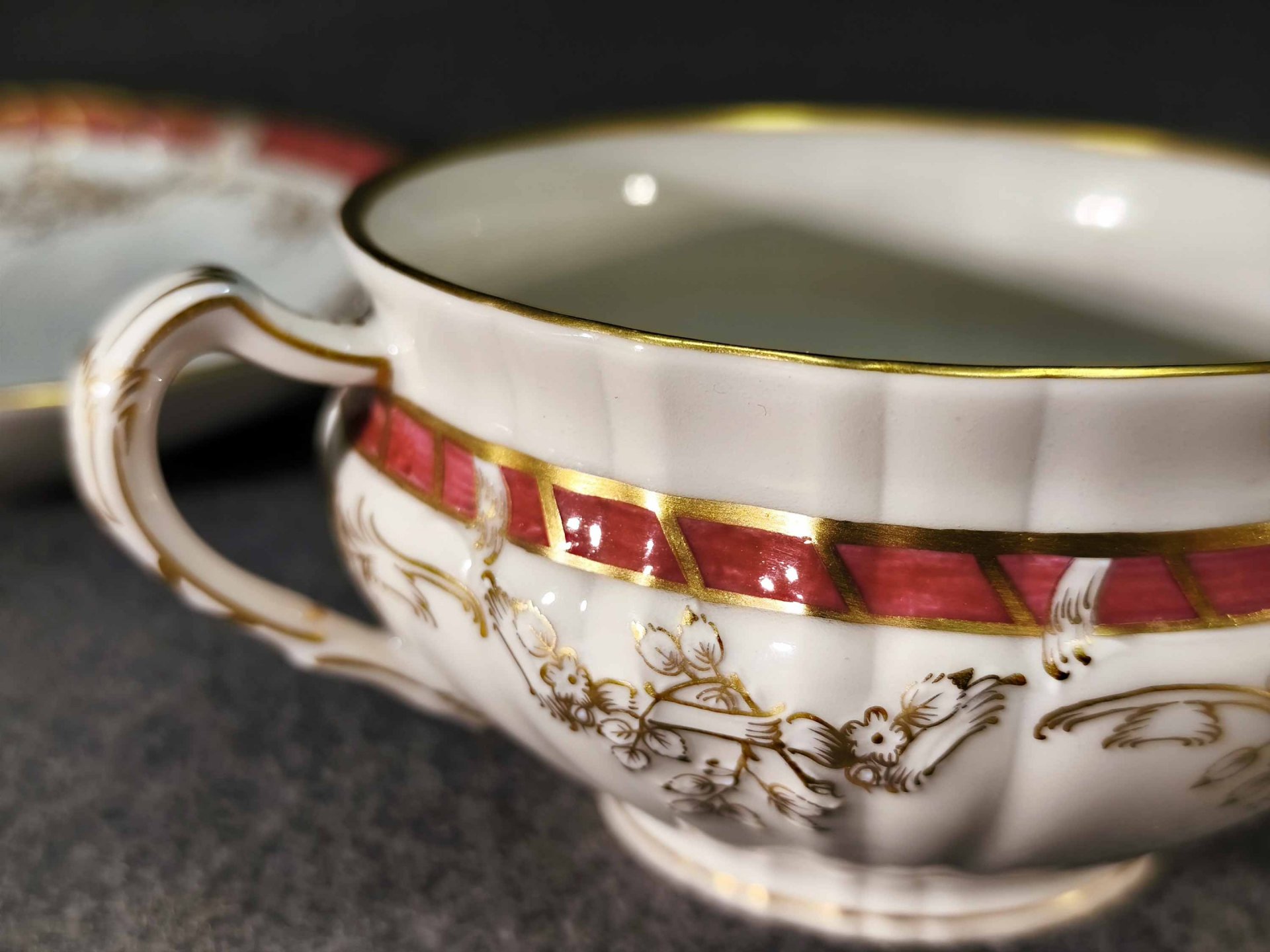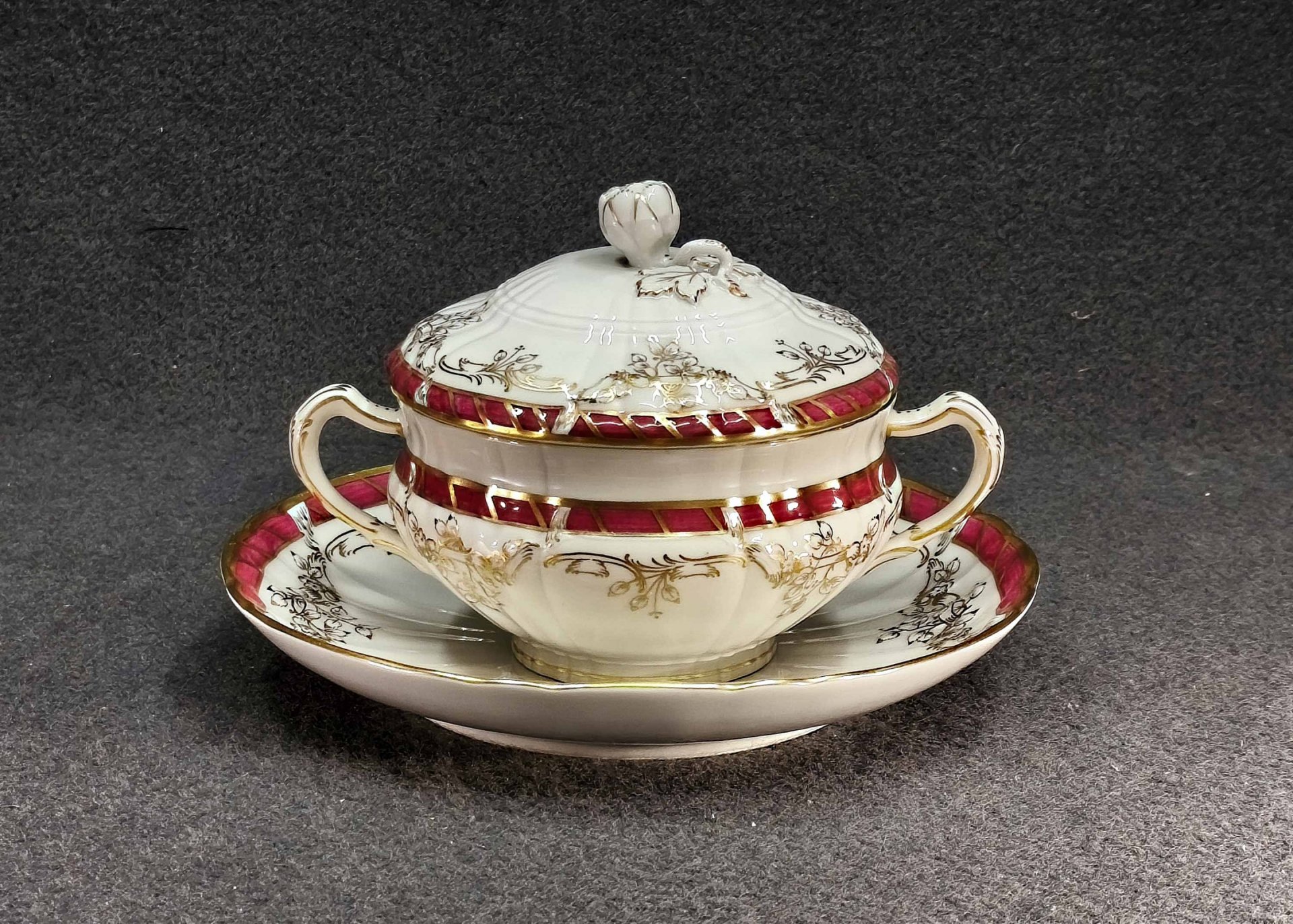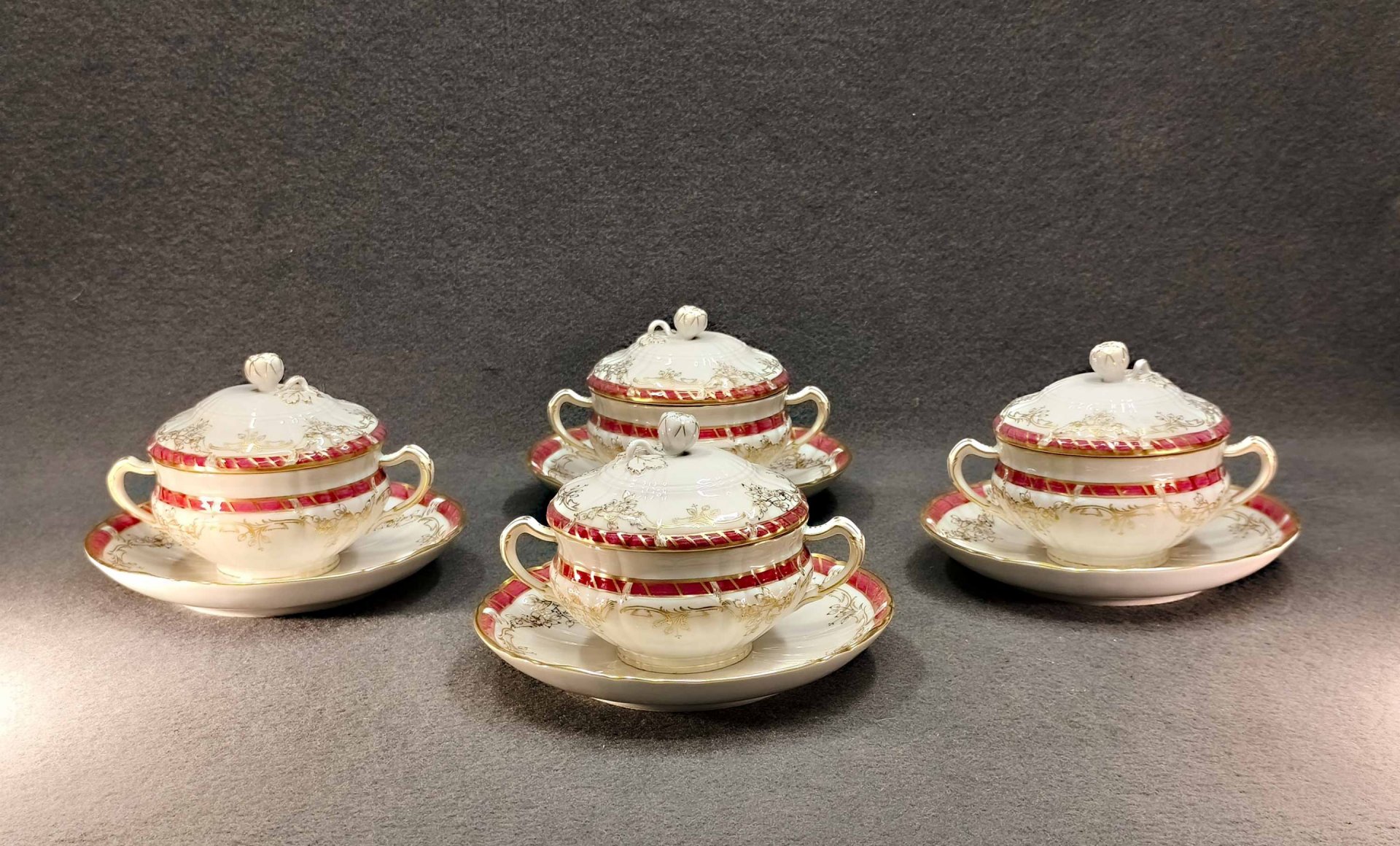KPM Berlin. Vier Suppentasse mit Deckel und Untertasse. Dekor/Serie Königin von Holland. Sehr guter Zustand ohne Beschädigungen, ohne Gebrauchsspuren.