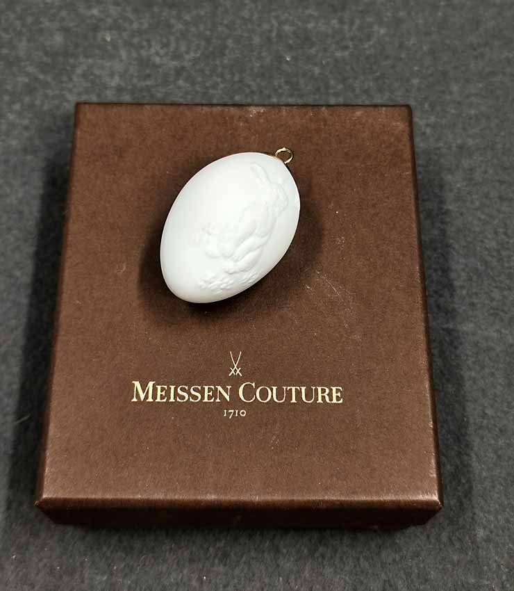 Meissen, Osterei Biskuitporzellan mit Hasenrelief, Meissen Couture, mit OVP