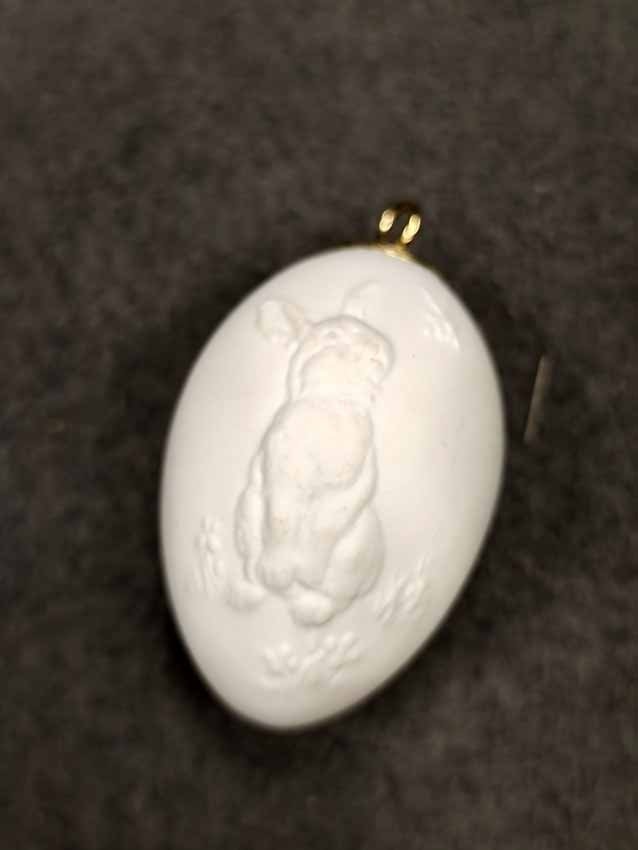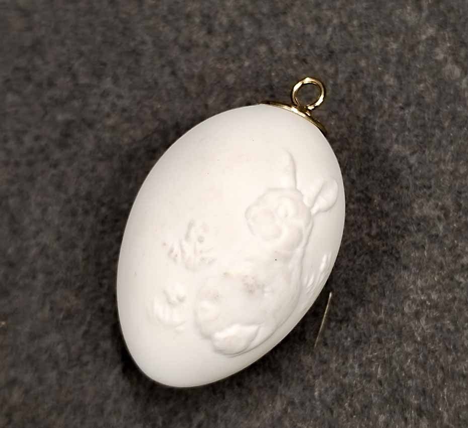 Meissen, Osterei mit zwei Hasenreliefs, Biskuitporzellan, in OVP. Sehr guter Zustand, Original Verpackung mit sehr geringen Lagerspuren. H. ca 5 cm.