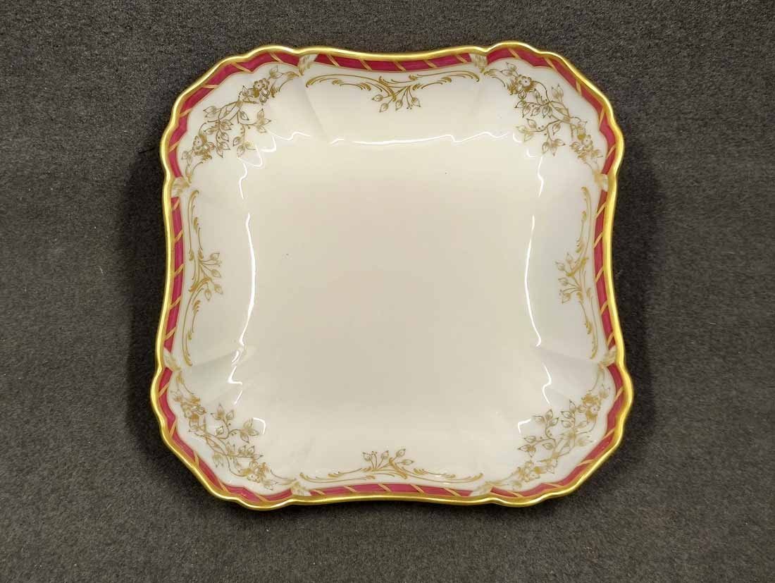 KPM Berlin, Viereck Schale, Schüssel L. x B. 22,5 cm. Königin von Holland, Rocaille Rot. Sehr guter Zustand ohne Beschädigungen oder Gebrauchsspuren. Kein Farb- oder Goldabrieb. Zeptermarke der KPM Berlin mit Reichsapfel rot. L. x B. 22,5 cm, H. 5 cm.
