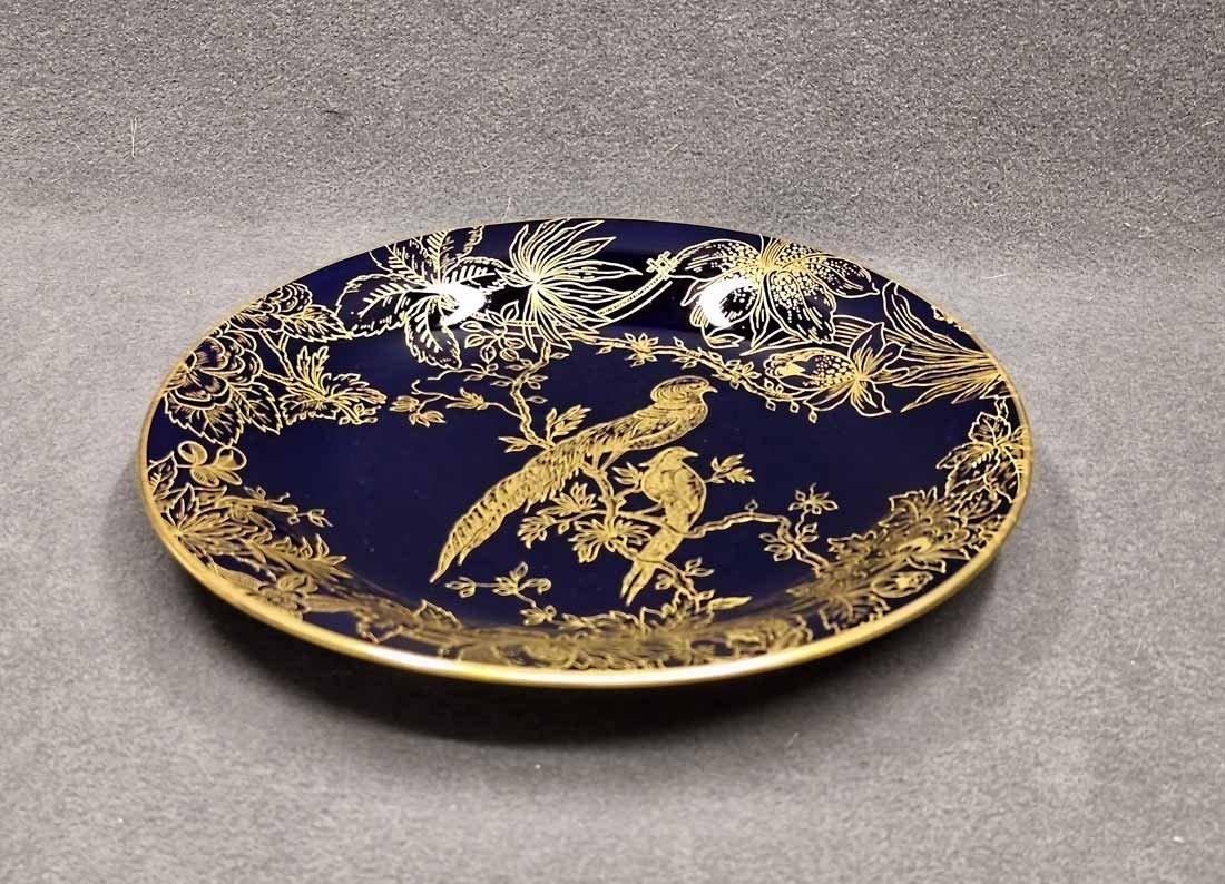 Echt Kobaltblau mit Goldmalerei, Großer Teller od. Schale. D. 30 cm. Zwei exotische Vögel zw. Blattranken. Graf von Henneberg Porzellan, Illmenau. Sehr guter Zustand ohne Beschädigungen, keine Gebrauchsspuren, kein Farb- od. Goldabrieb. D. 30 cm, H. 4 cm.
