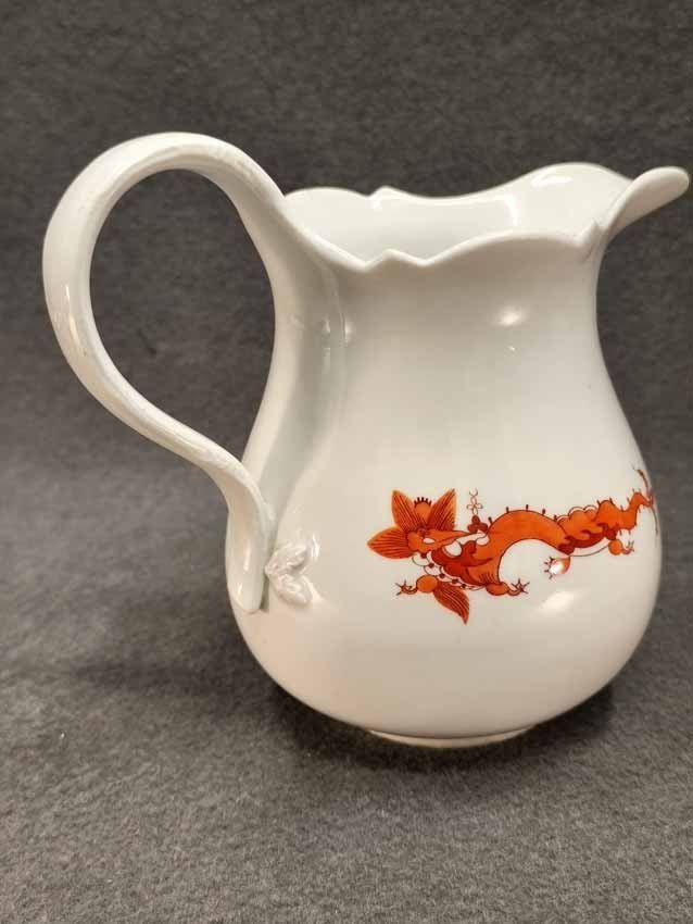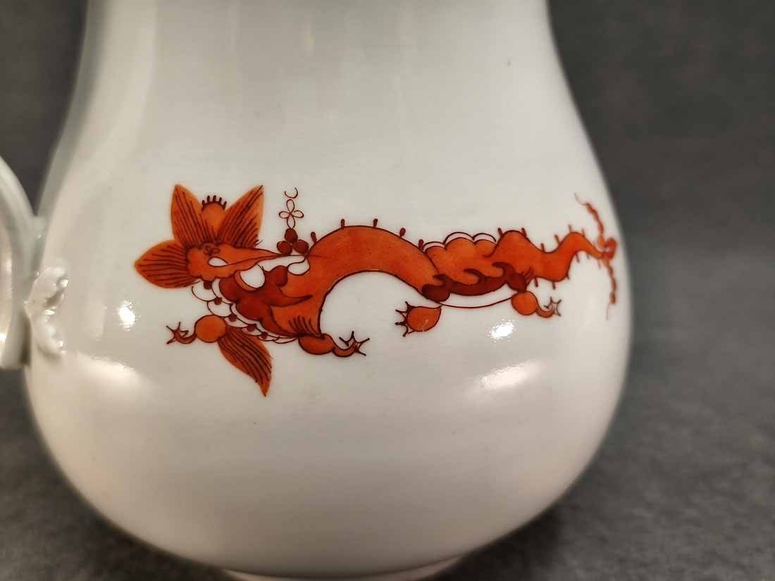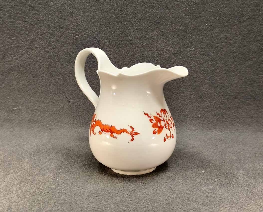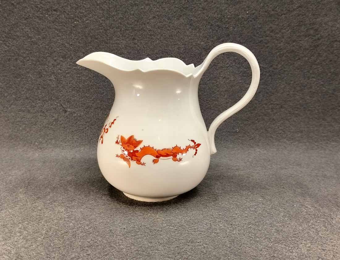 Meissen großer Krug, Milchkrug, H. 16 cm, Dekor Roter Drache. Guter Zustand, herstellungsbedingt zwei minimale Unregelmäßigkeiten am Rand. Schwertermarke, 4x gestrichen.