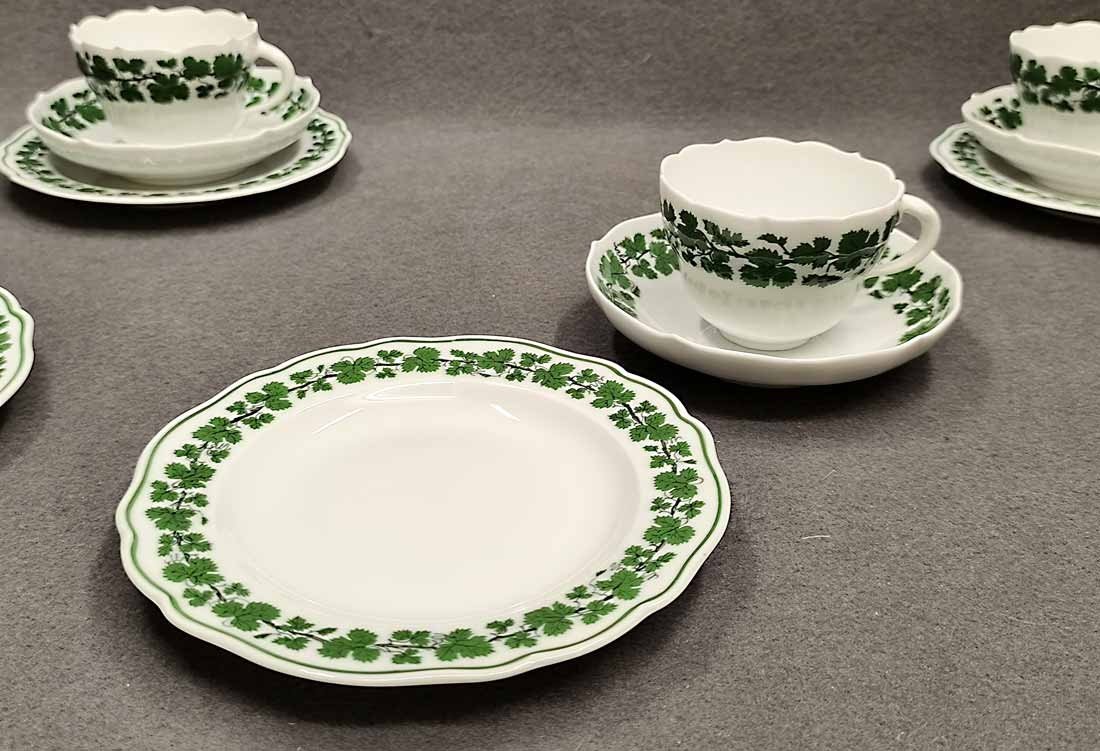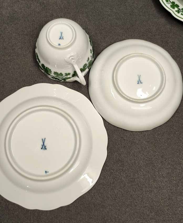 Meissen, 6x Gedecke 3-tlg, Weinlaub, 1. Wahl, Knaufz.um 1900