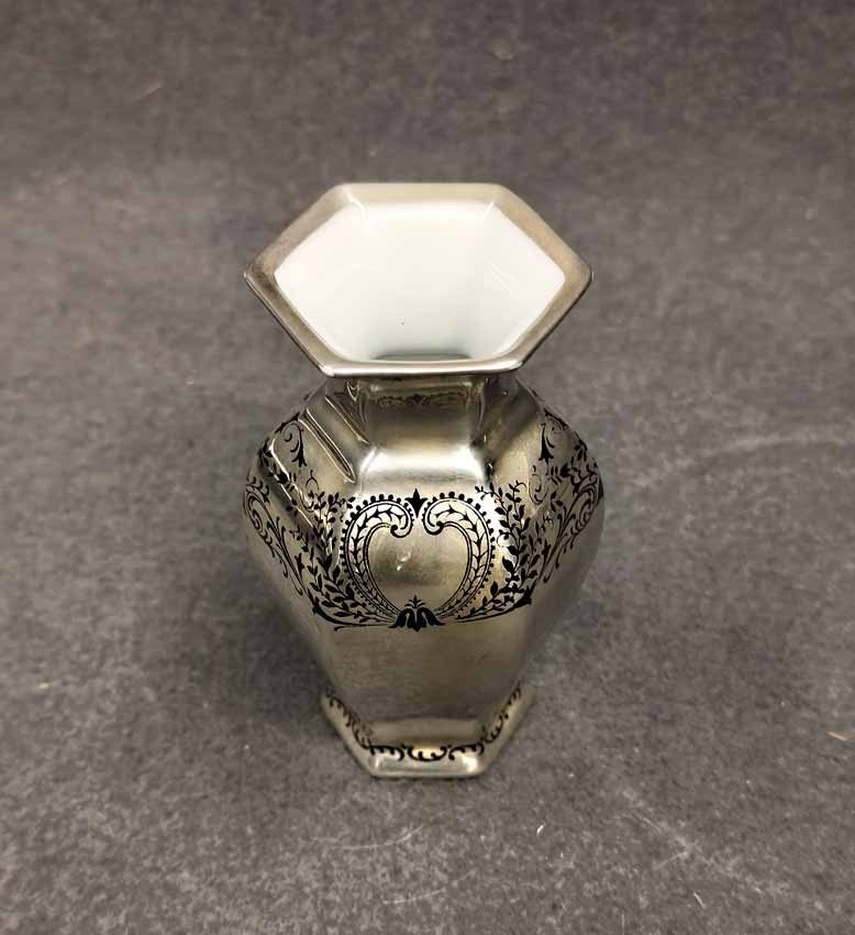 Rosenthal, Vase Porzellan versilbert mit Ornament