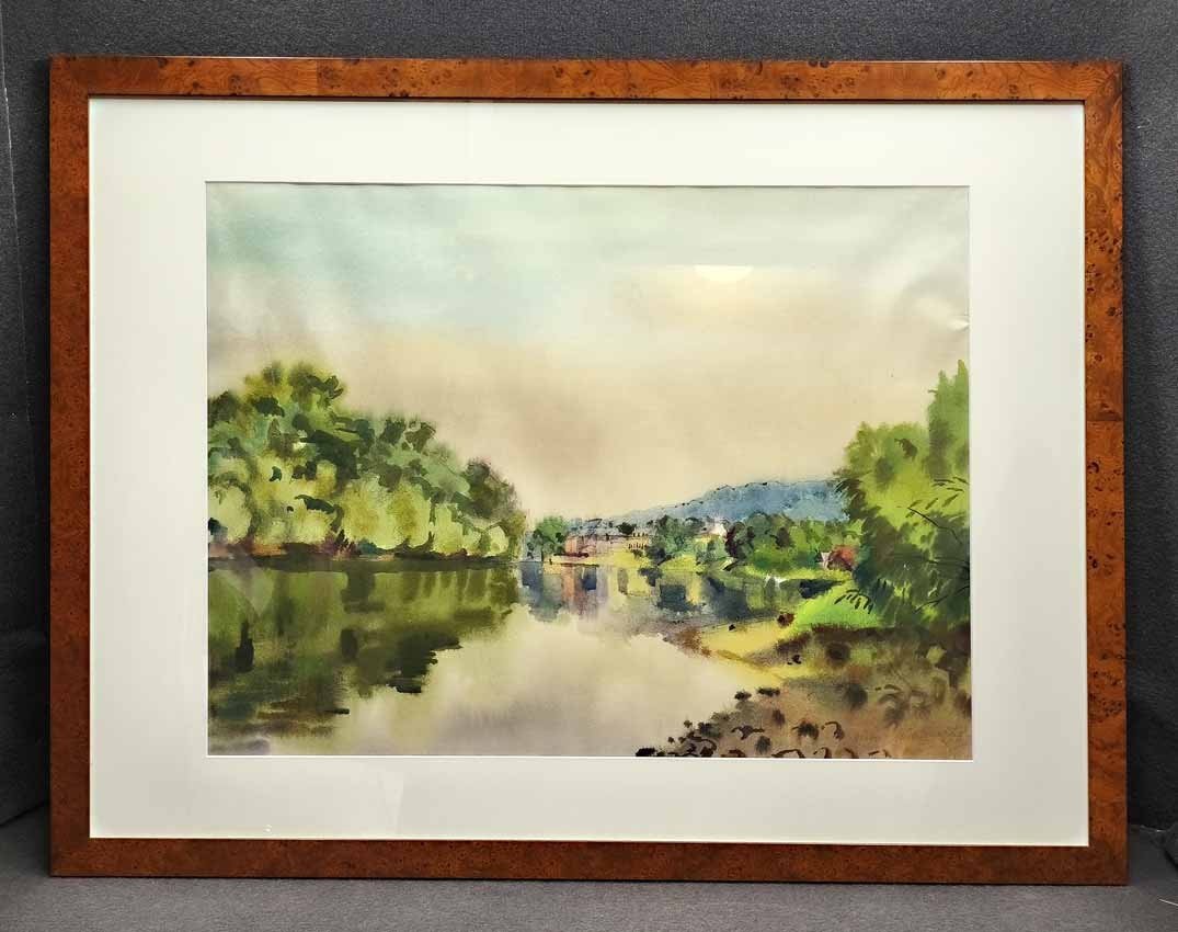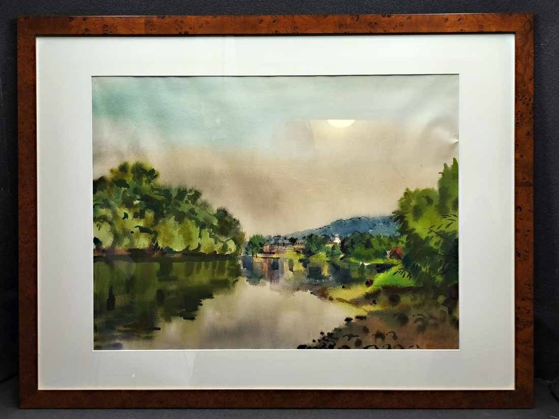 Reserviert!  Herbert Müller, *6.April 1910 in Daube; † 2001 in Dresden. Aquarell; Pillnitz mit Insel und Schloss. Re u. sign. "Herbert Müller" und dat. "1978". Seitl. re. o. Knick im Blatt am Passepartout. Aquarell 61 x 45,5 cm, Passepartout 79 x 59 cm, Rahmen 86 x 65 cm.