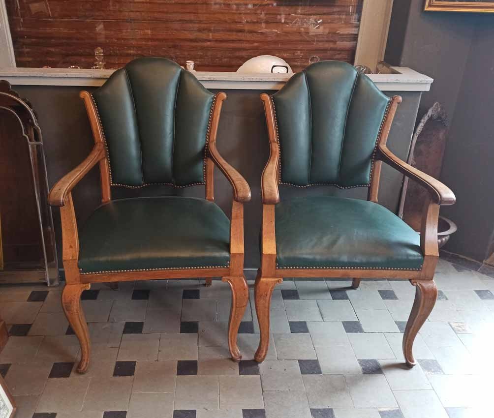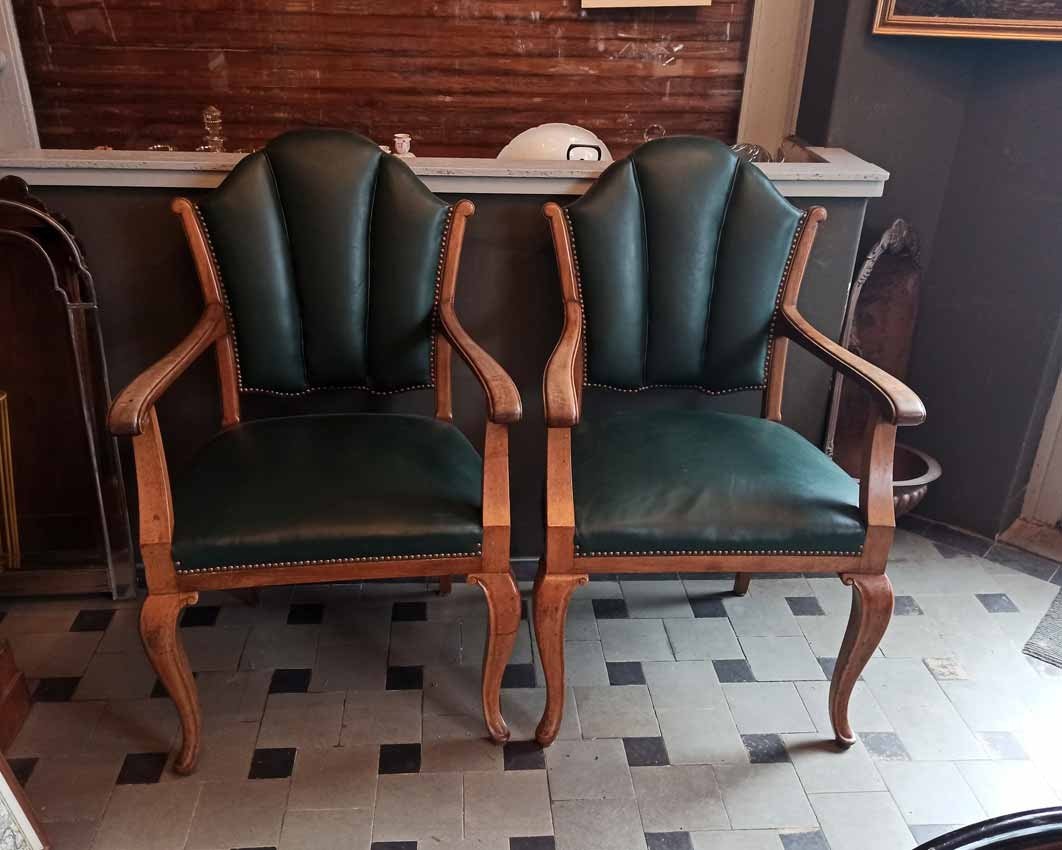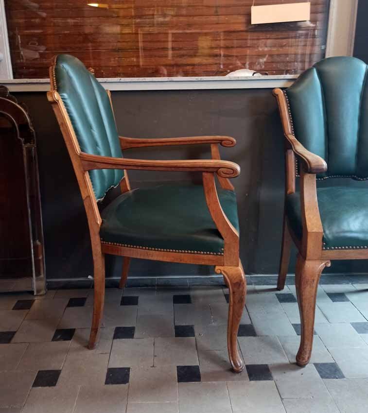 Armlehnstühle, Sessel um 1910. Sehr guter Zustand. H. Lehne 100 cm, Sitz ca 50 cm, B. Sitz 50 cm, ges. 62 cm, T. 47 cm. Auch einzeln, Preis je Stuhl 75 Euro.