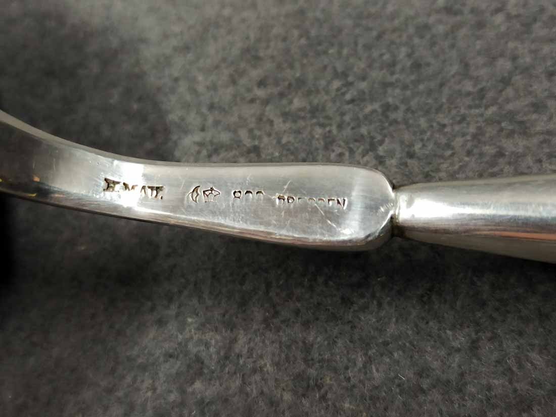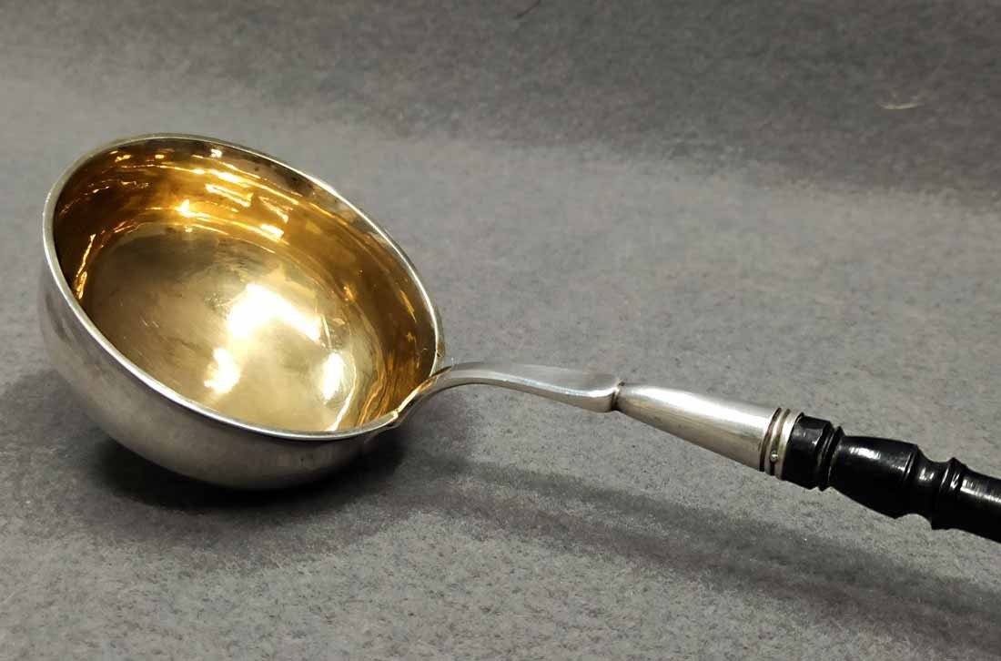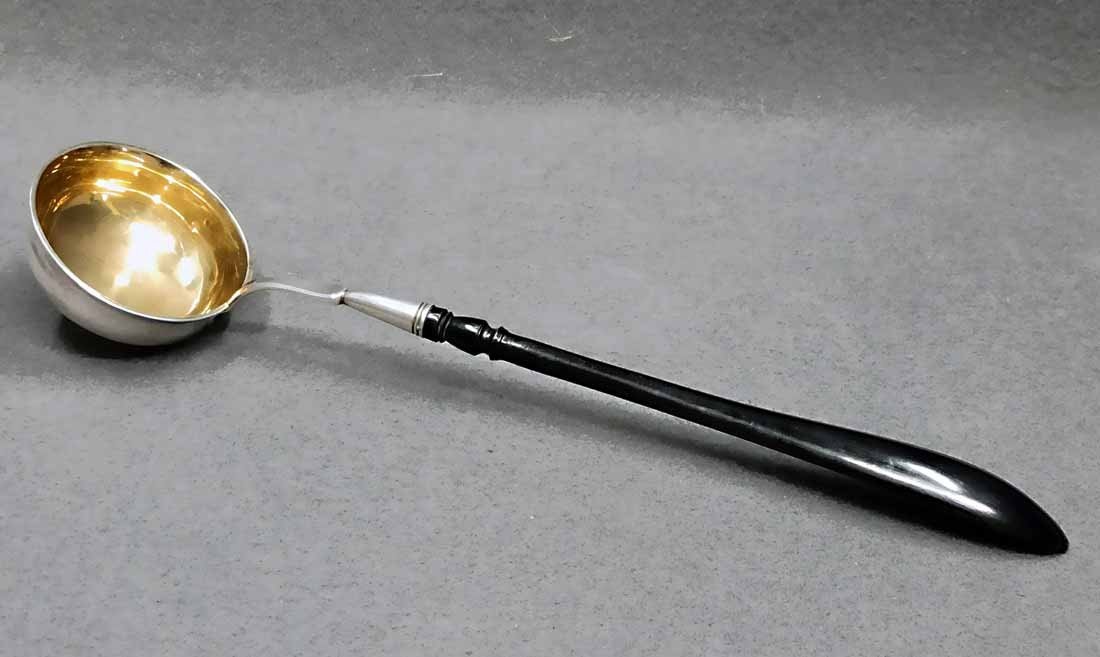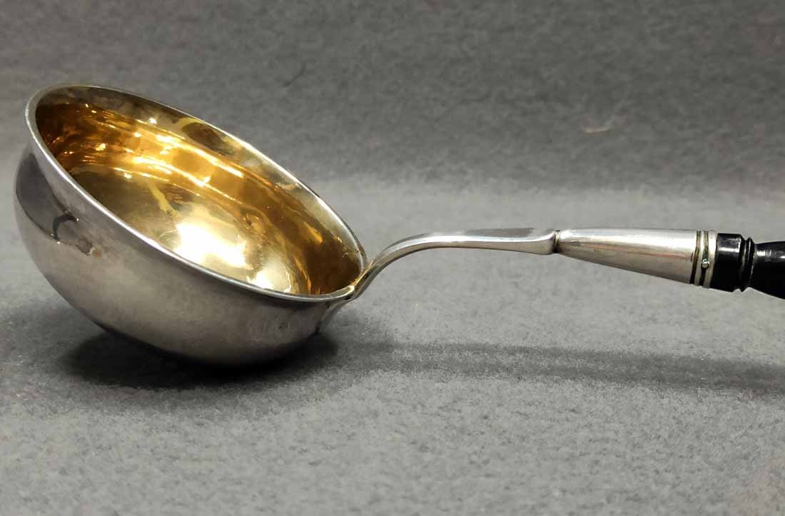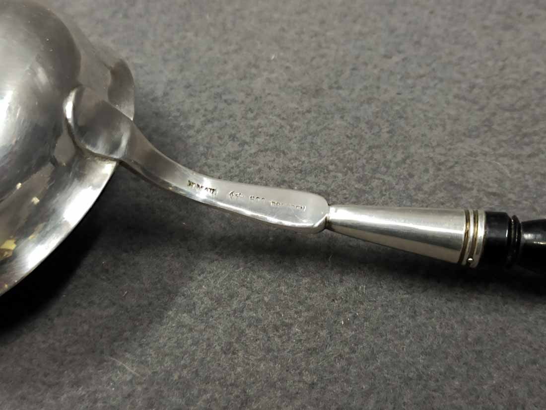 Silberkelle um 1880, Silber 800 er. Heinrich Mau, Dresden. L. ca 40 cm, Gew. ges. 135 g.