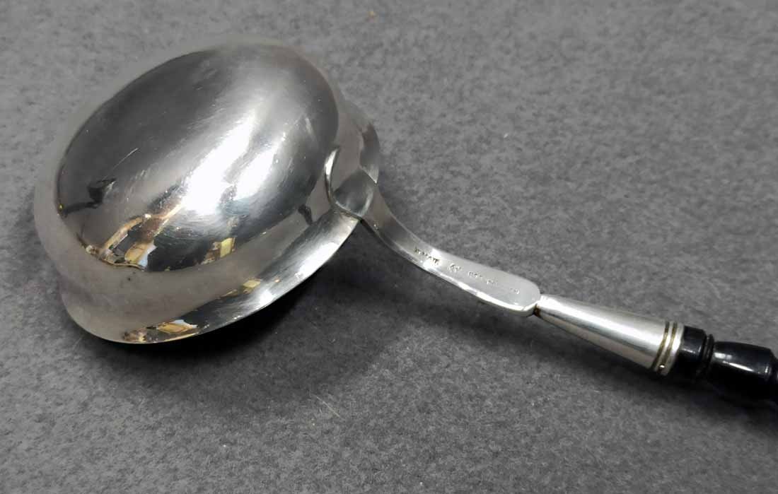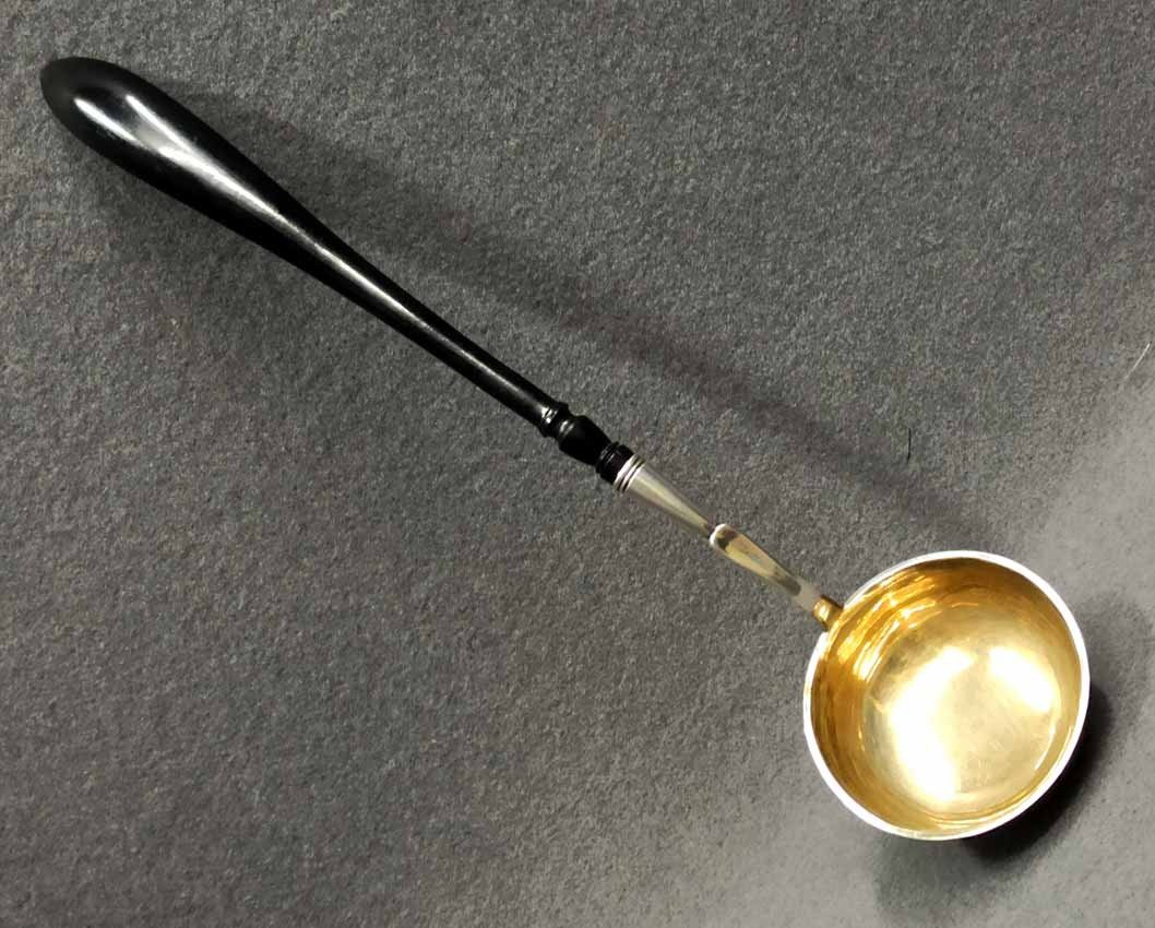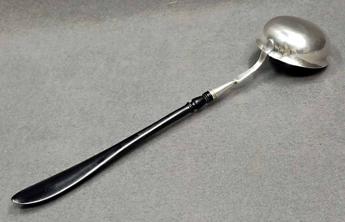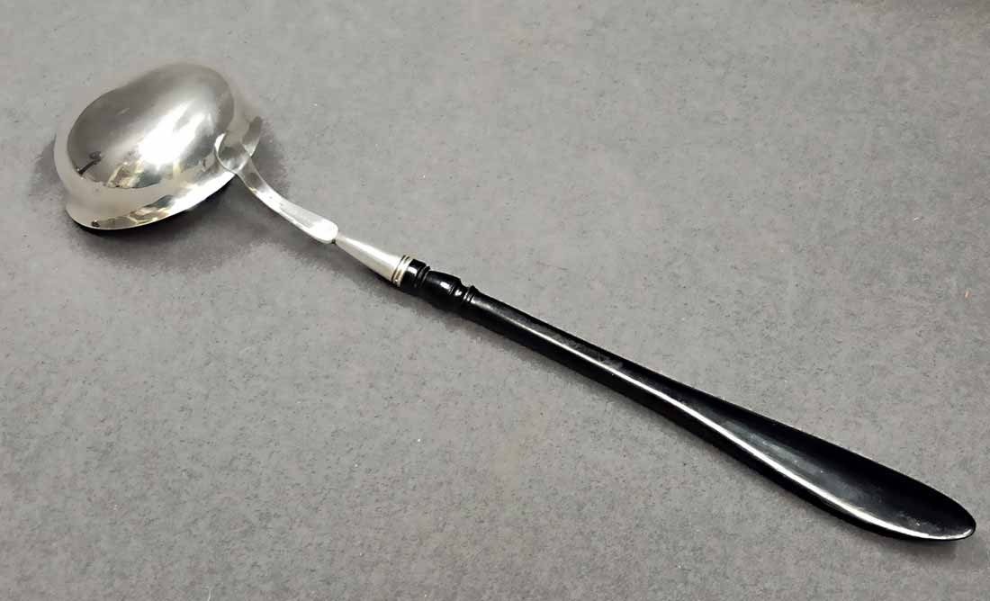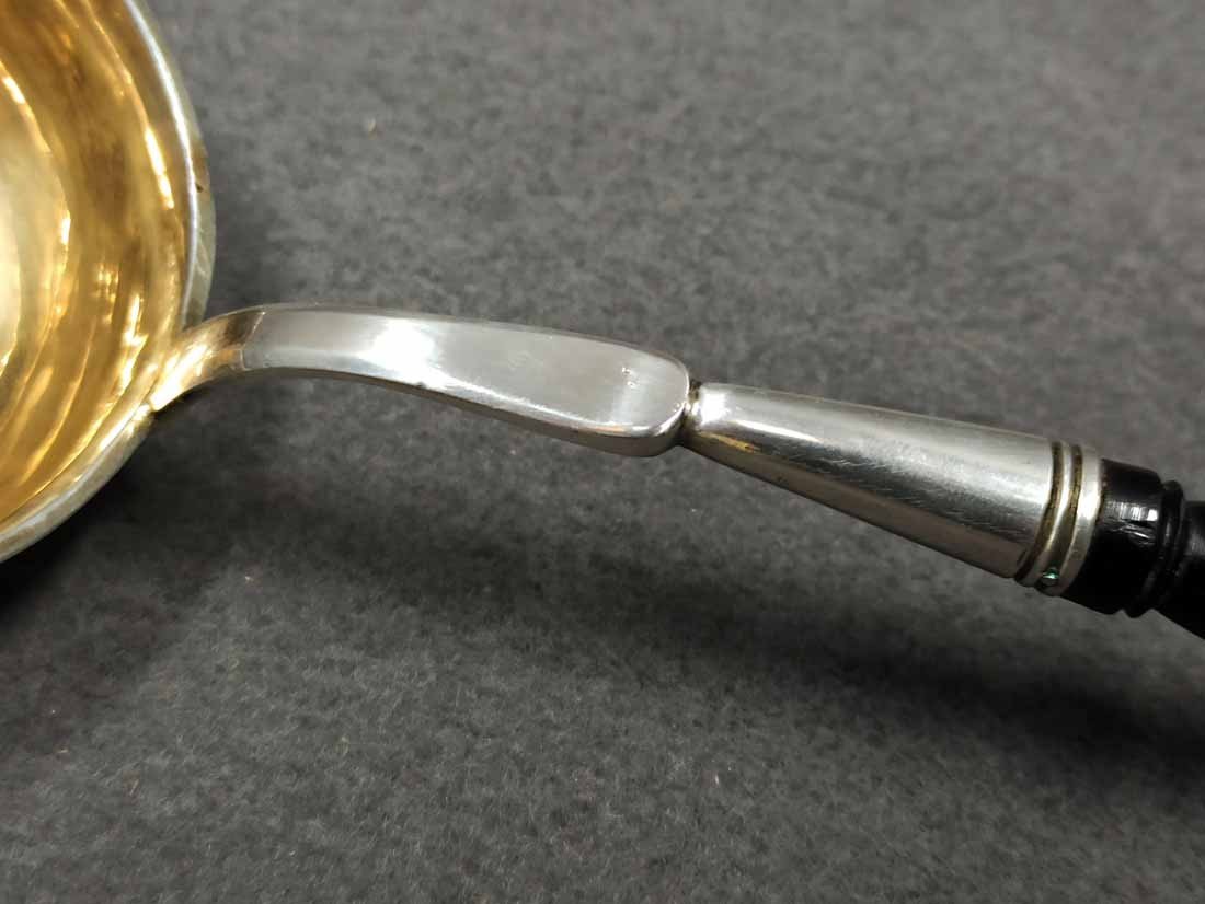 Silberkelle um 1880, Silber 800 er. Heinrich Mau, Dresden. L. ca 40 cm, Gew. ges. 135 g.