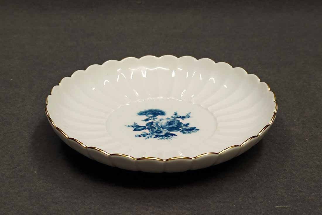 Reserviert! Meissen, kl. Fächerschale, Blaue Blume und Goldrand, 1. Wahl