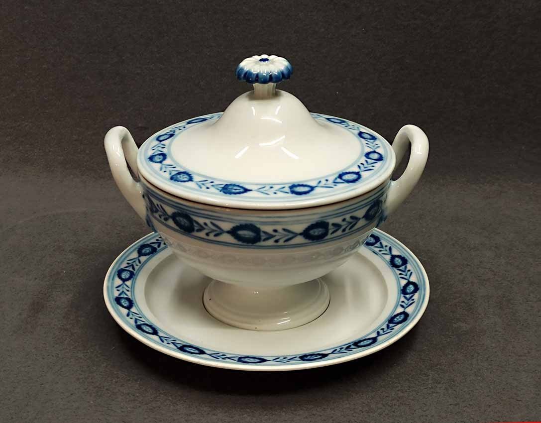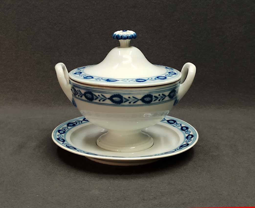 Reserviert! Meissen um 1860, Deckelterrine mit Teller, Blaumalerei, 1. Wahl