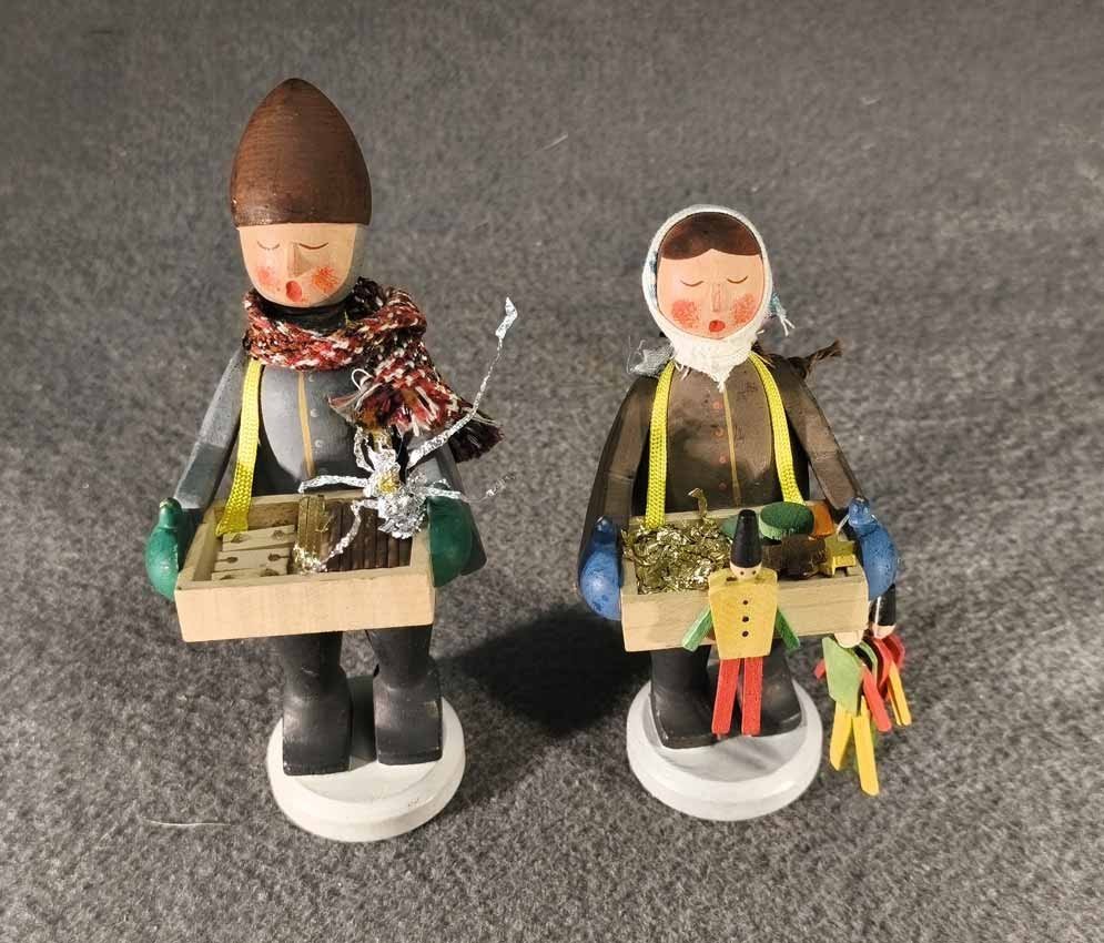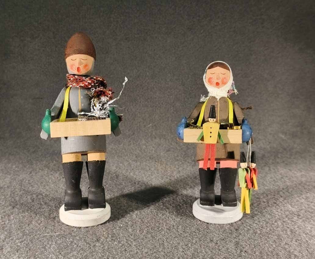 Reserviert! Zwei Strizelkinder, Erzgebirge. Es fehlen die drei Pflaumentoffel auf dem Verkaufstisch des Jungen.
