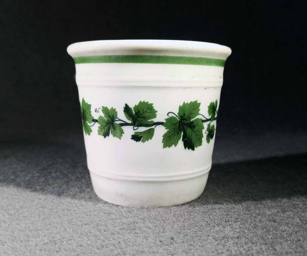 Meissen um 1850, kleiner Übertopf, Blumentopf. Zustand mit Gebrauchsspuren, leichten Verfärbungen i.d. Glasur, Haariss im Boden.