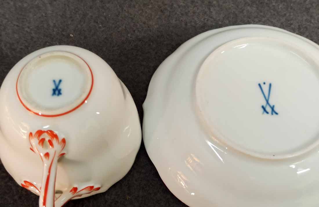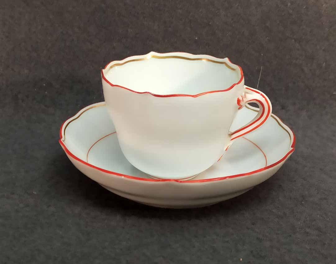Mokkatasse, Meissen, Rote Koralle mit Goldrand.