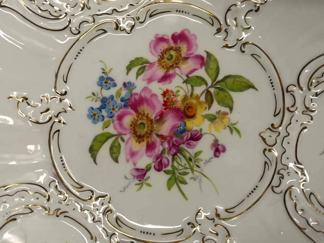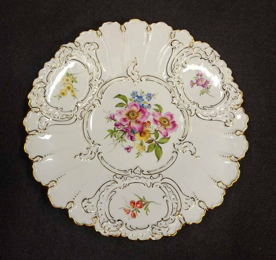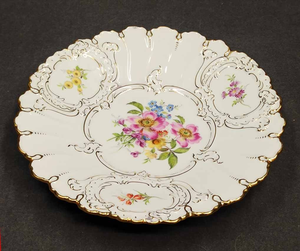 Meissen, Prunkschale, Teller mit Blumenmalerei und Reliefrand