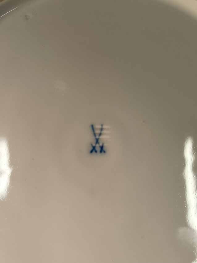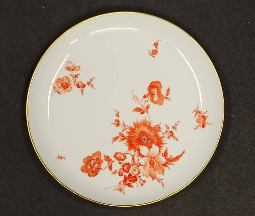 Meissen, Schale oder Teller, D. 25 cm, monochrome Blumenmalerei mit Goldrand. Sehr guter Zustand ohne Beschädigungen. D. 25 cm, H. 3 cm. Schwertermarke 4x gestrichen.