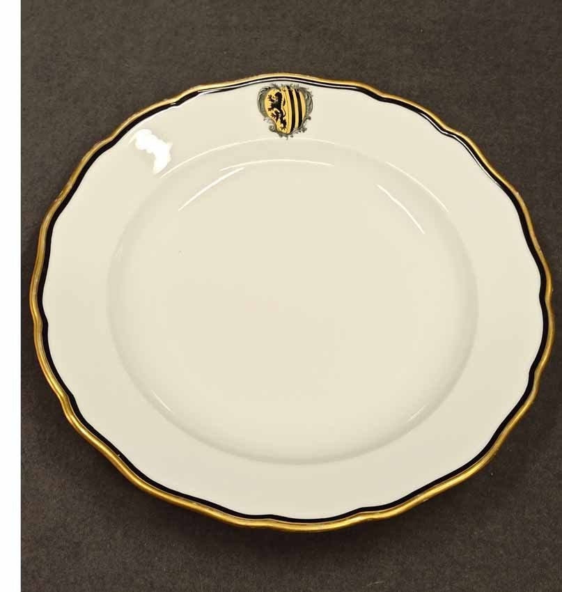 Meissen, großer Speiseteller mit Stadtwappen von Dresden. Rs. alte Sammleretiketten. D. 25 cm