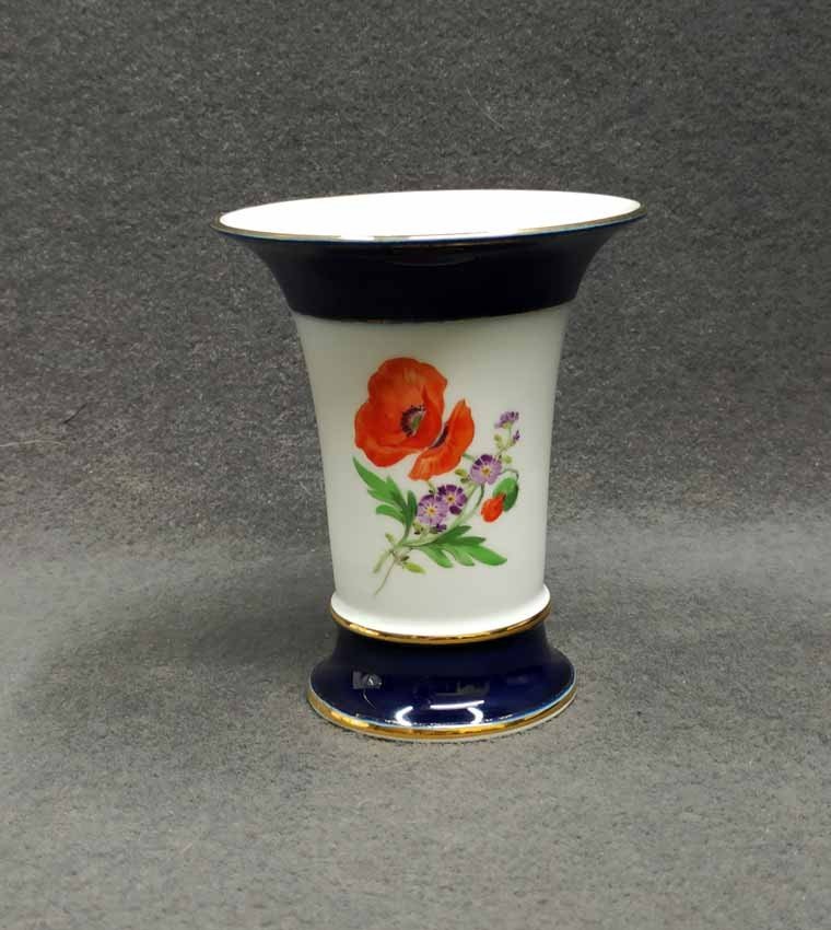 Meissen, Vase mit Kobaltblau und Gold, Blumenmalerei