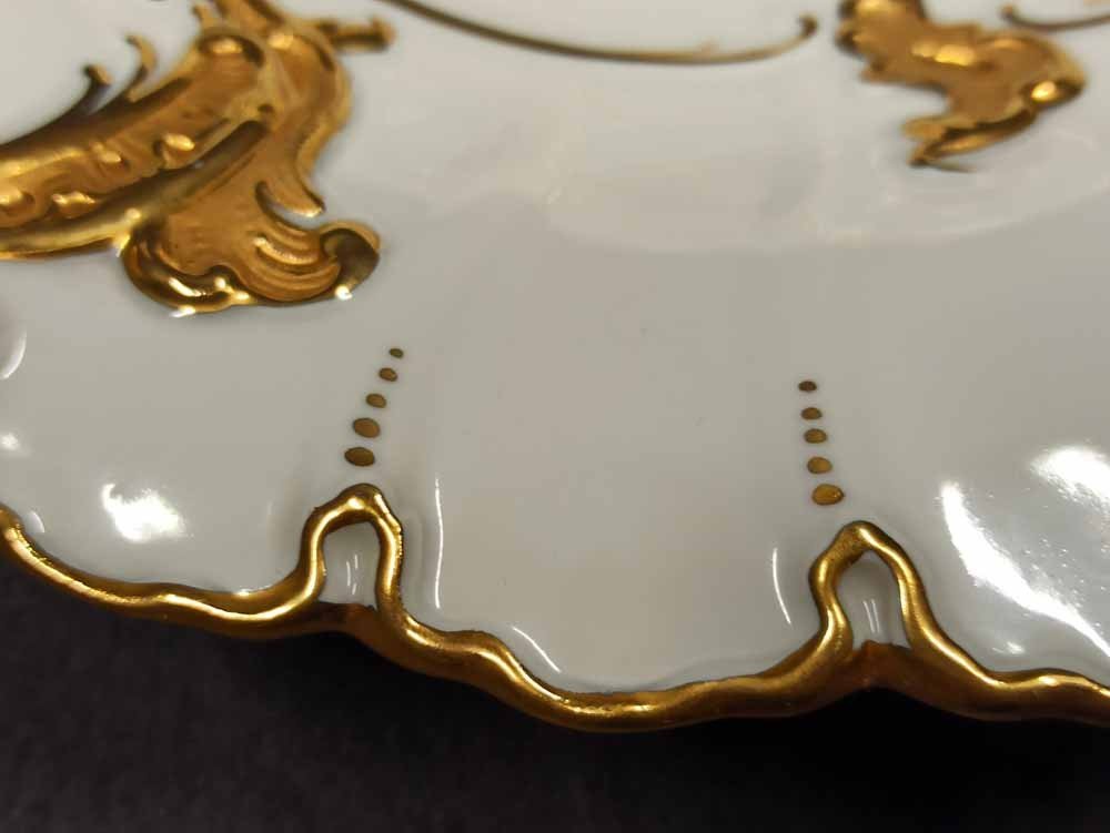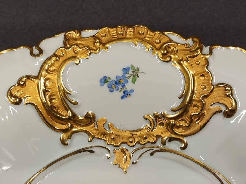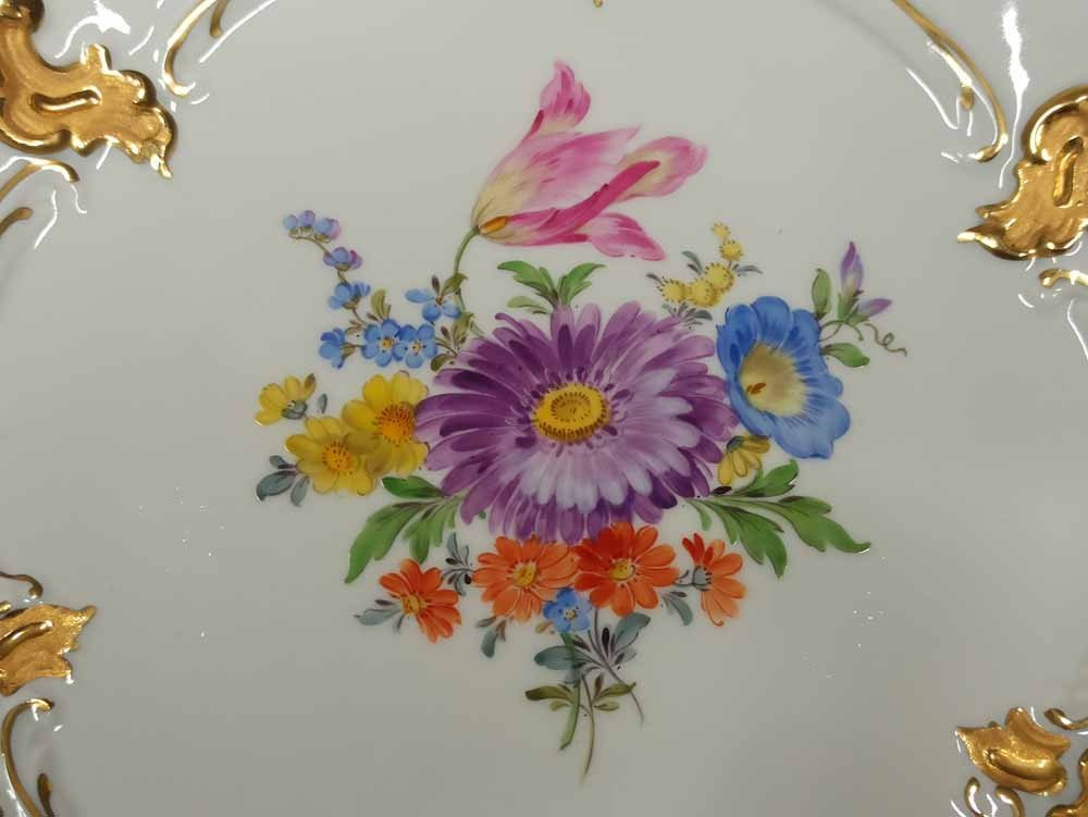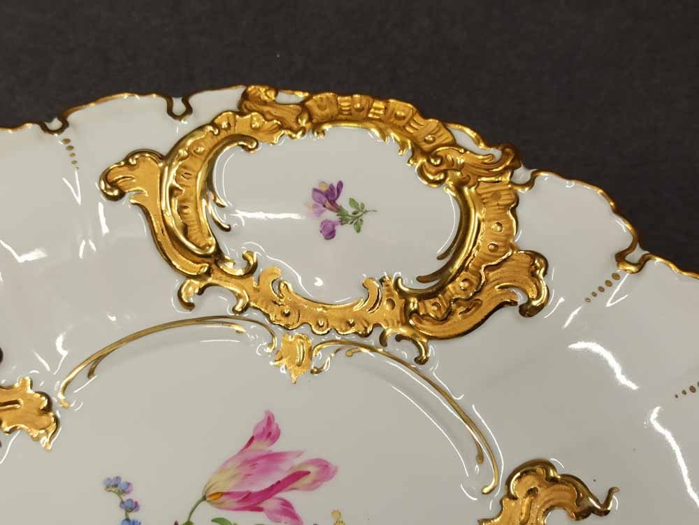 Reserviert! Meissen, Prunkschale, Reliefrand mit Gold sowei Blumenmalerei, um 1880, D. 30 cm