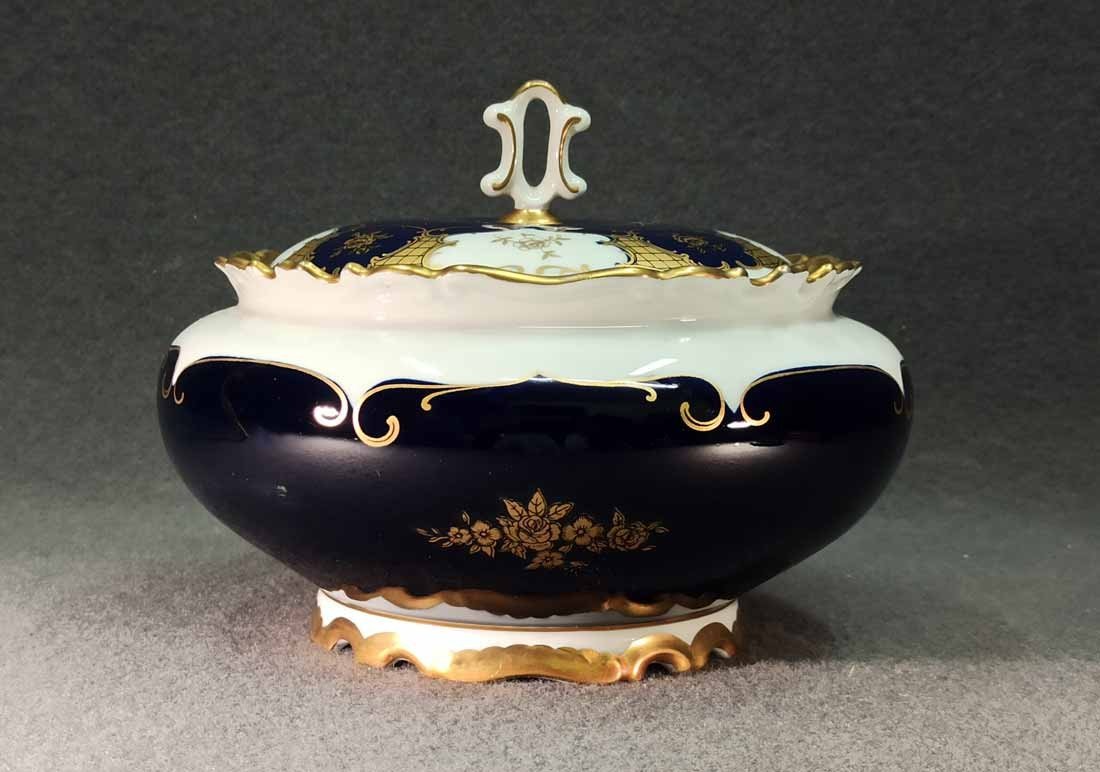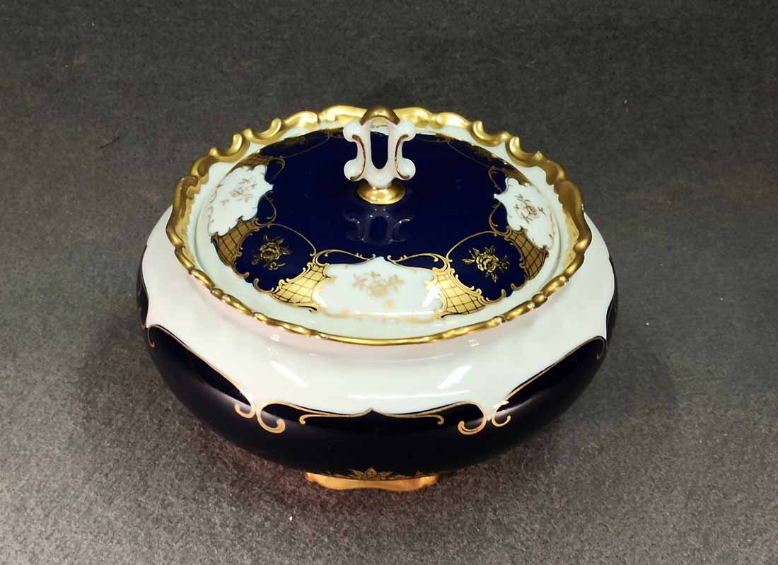Reserviert! Konfektdose, Kobaltblau und Gold, große Deckeldose, Thüringen