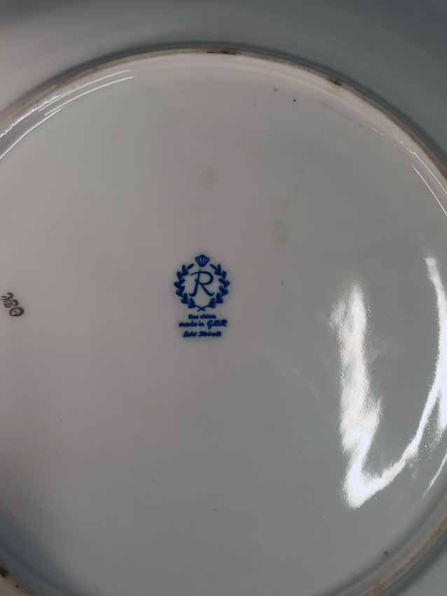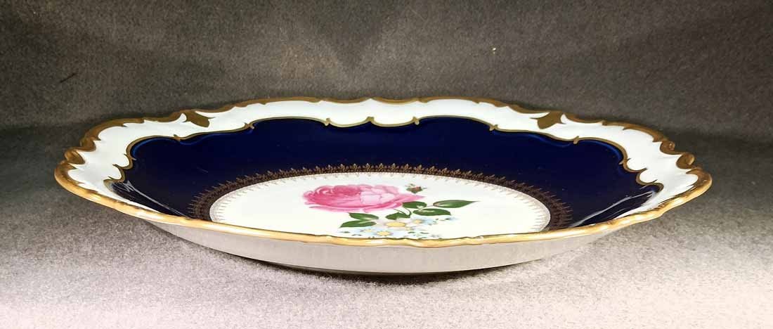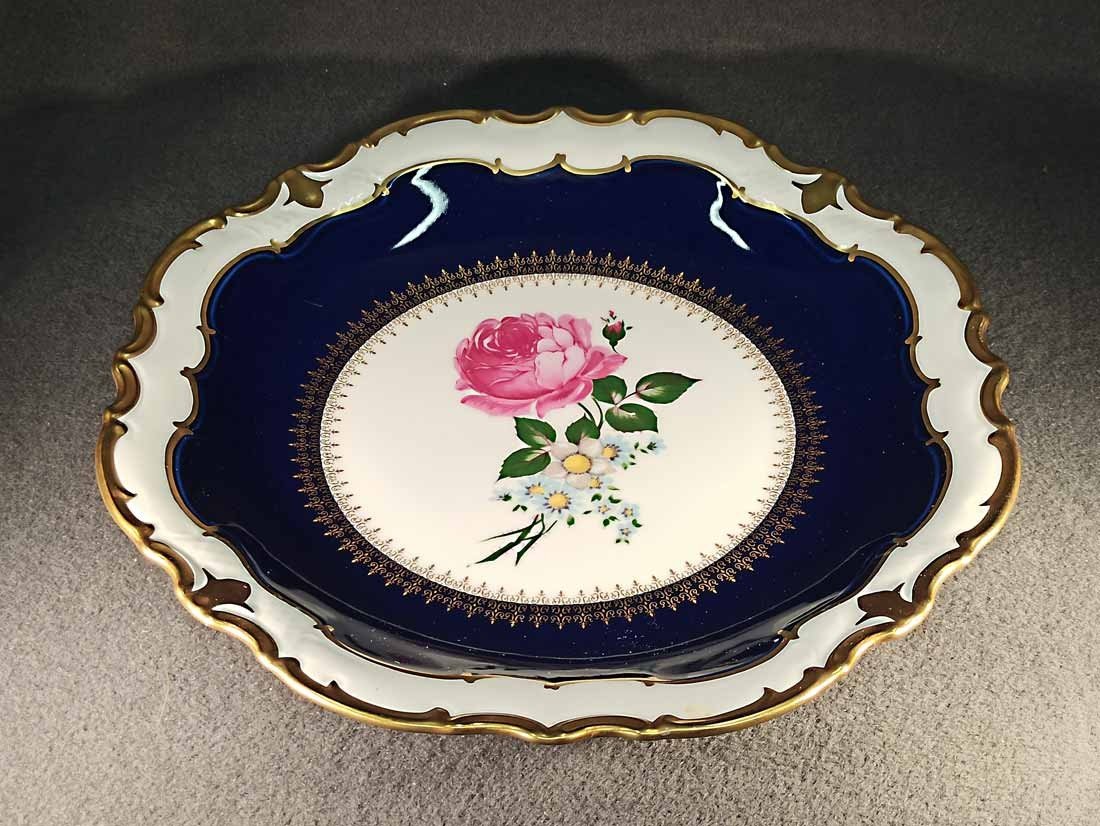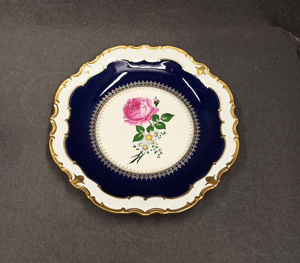Großer Teller od. Schale, Prunkteller in Kobaltblau mit Golddekor und Rosenmalerei. Reichenberg Porzellan a.d. Vogtland. Sehr guter Zustand ohne Beschädigungen. D. 32 cm, H. 4 cm
