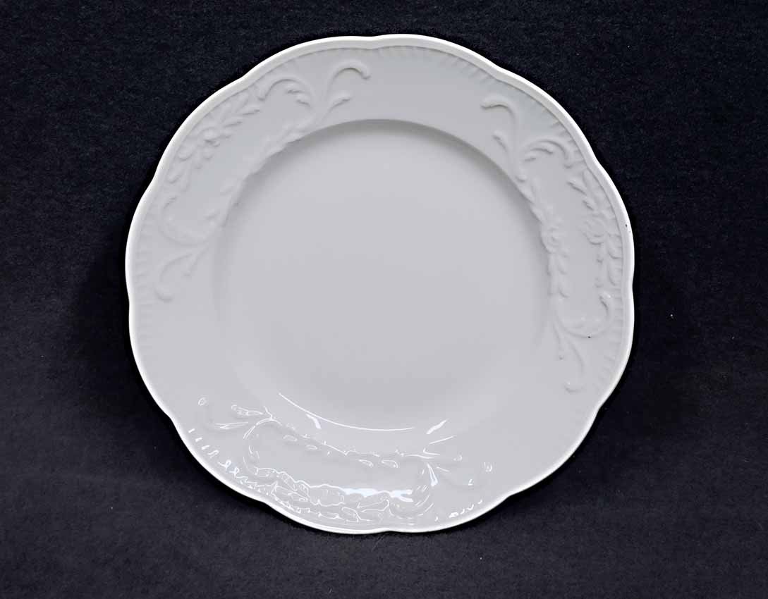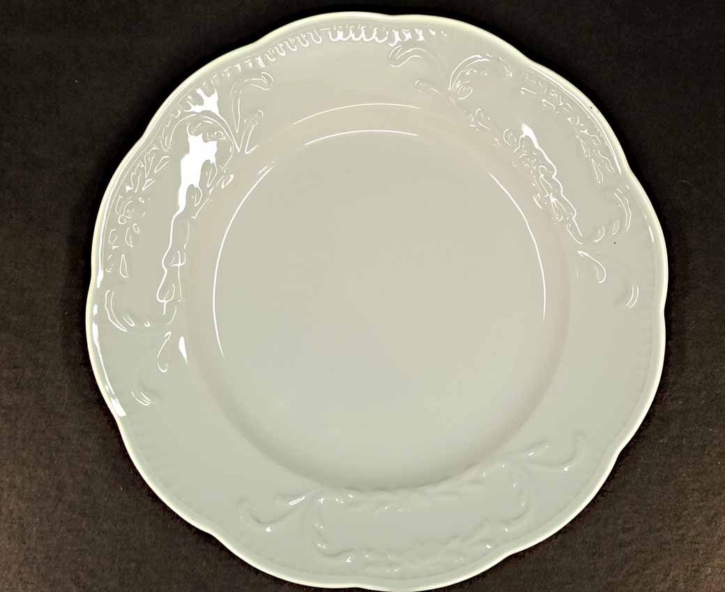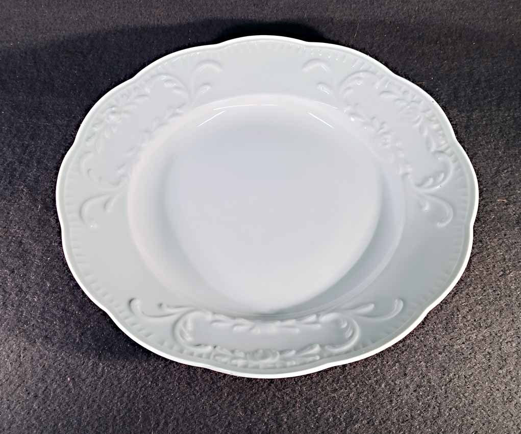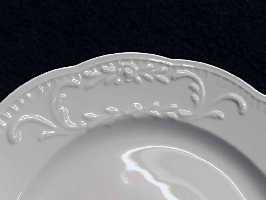 Meissen, weißer Teller mit Reliefrand. D. 25,5 cm. Sehr guter Zustand ohne Beschädigungen. Blaue Schwertermarke der Manufaktur Meissen, 4x gestrichen.