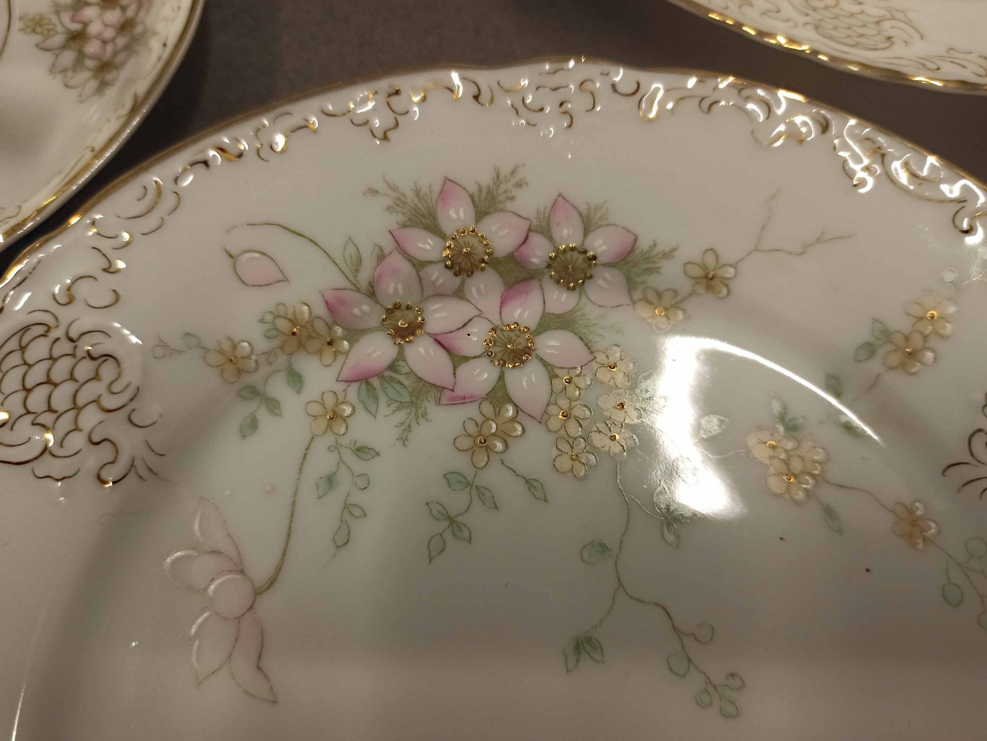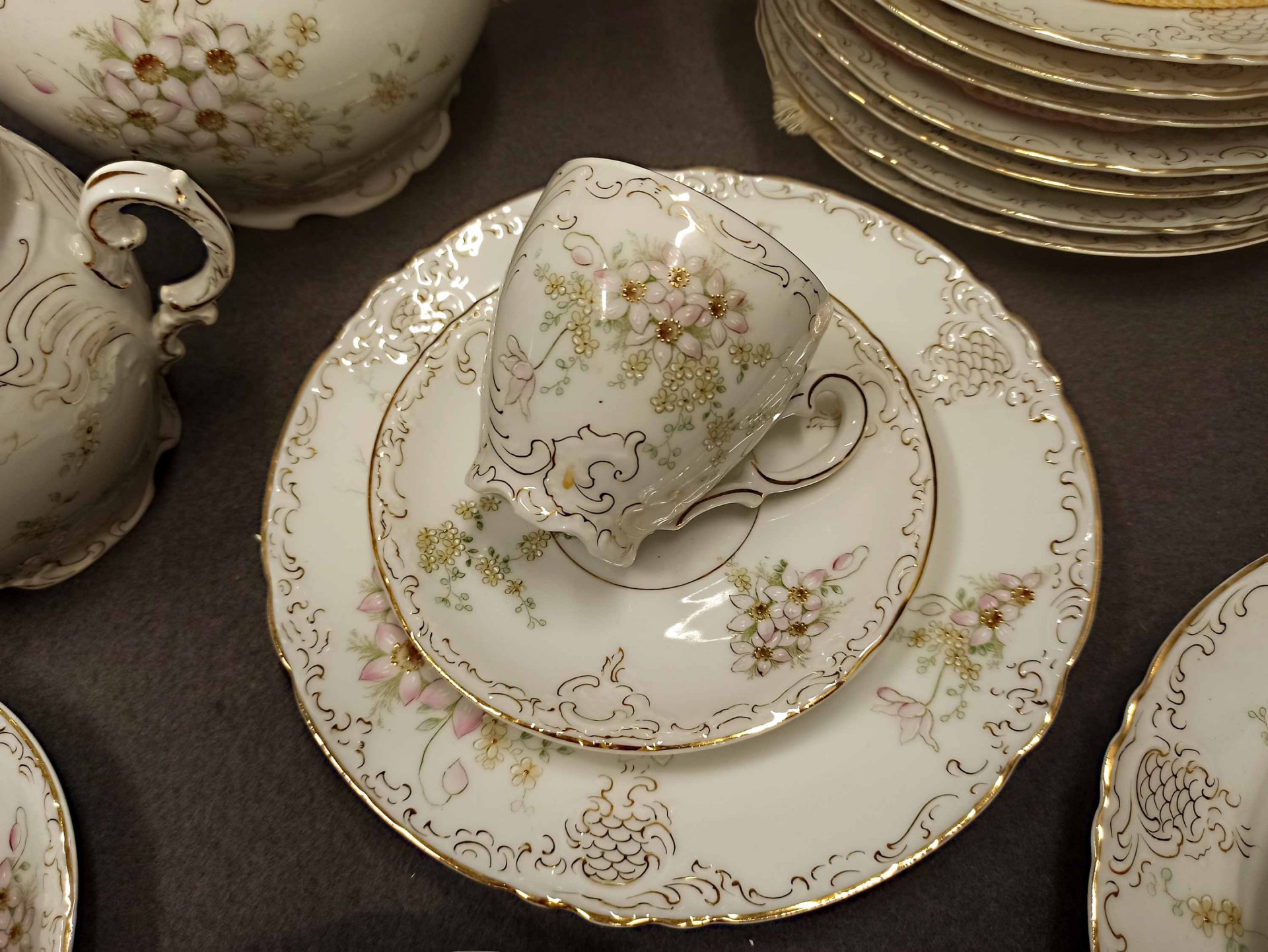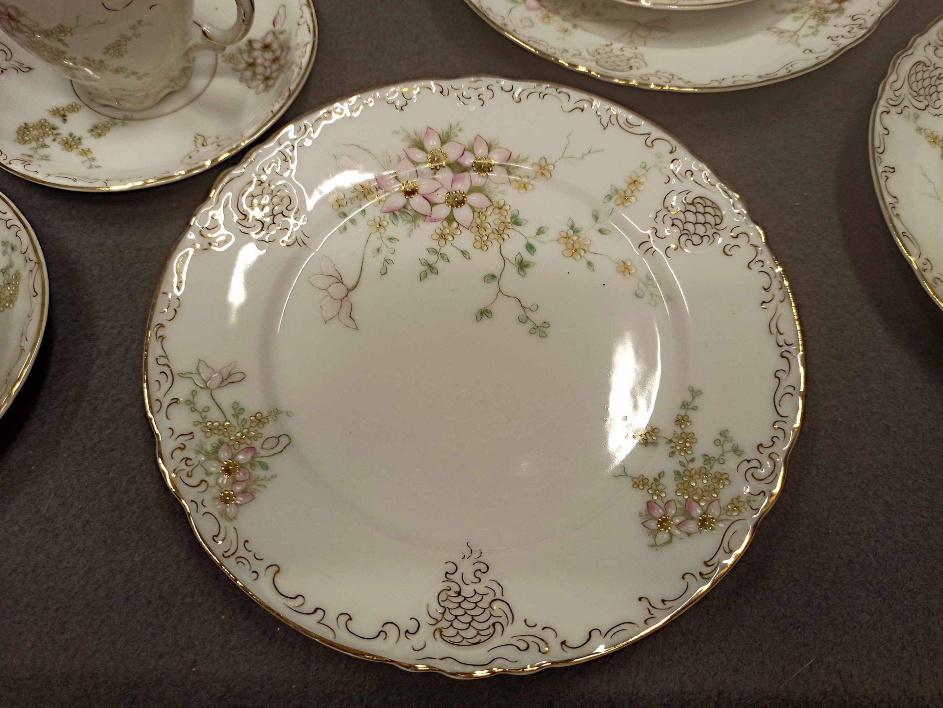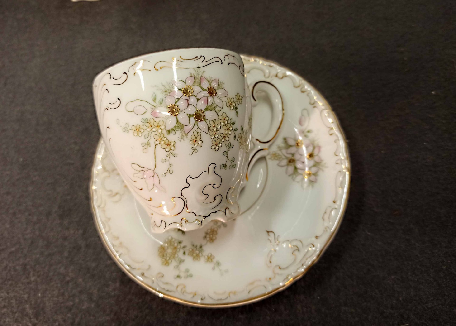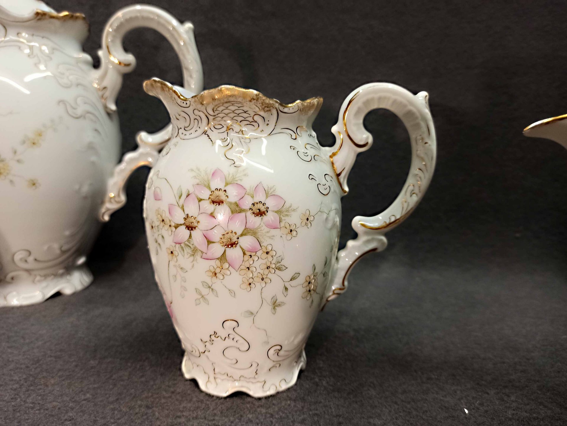 Reserviert! Krautheim & Adelberg, Selb um 1890. Teeservice, Kaffeeservice für 12 Personen. Schöne Blumenmalerei in Emaille und Golddekor. 40 Teilig: 1x Teekanne, 1x Kaffeekanne, Sahnegießer und Zuckerdose sowie 12 Gedecke je Tasse mit Untertasse und Kuchenteller. Gut/sehr gut erhalten. Eine Tasse mit Beschädigung, Abplatzer mit Riss (Foto). Alles andere i.O. Die Malerei ist sehr gut und es gibt keine Gebrauchsspuren.