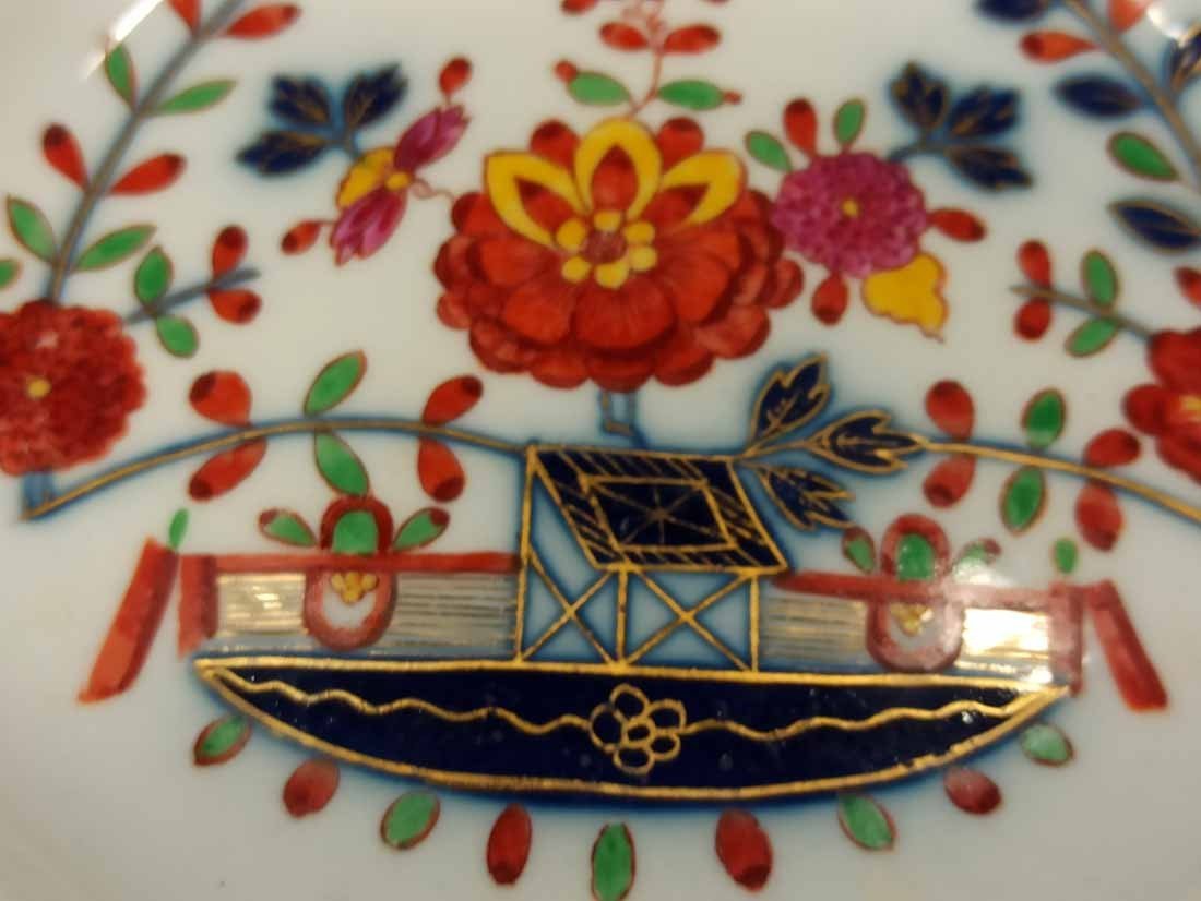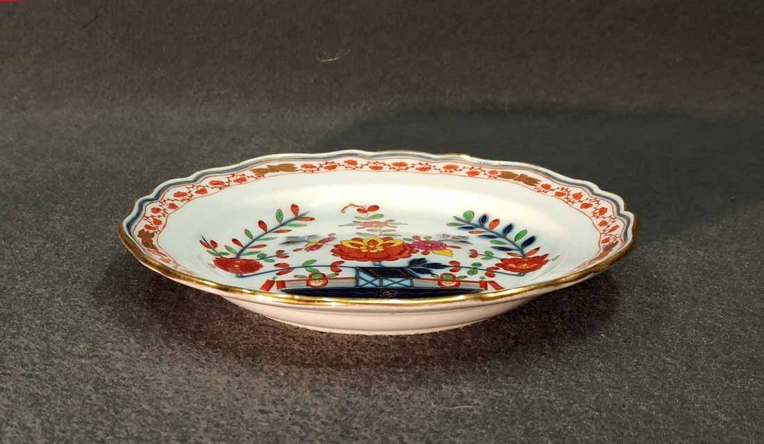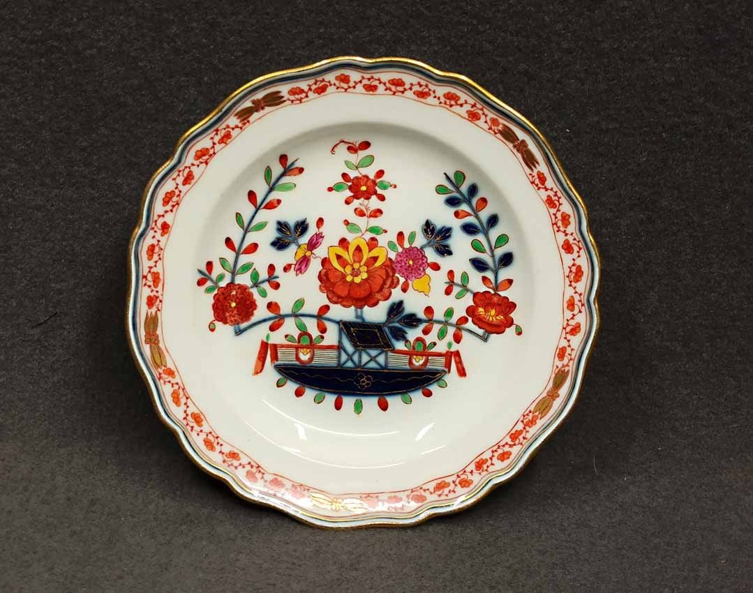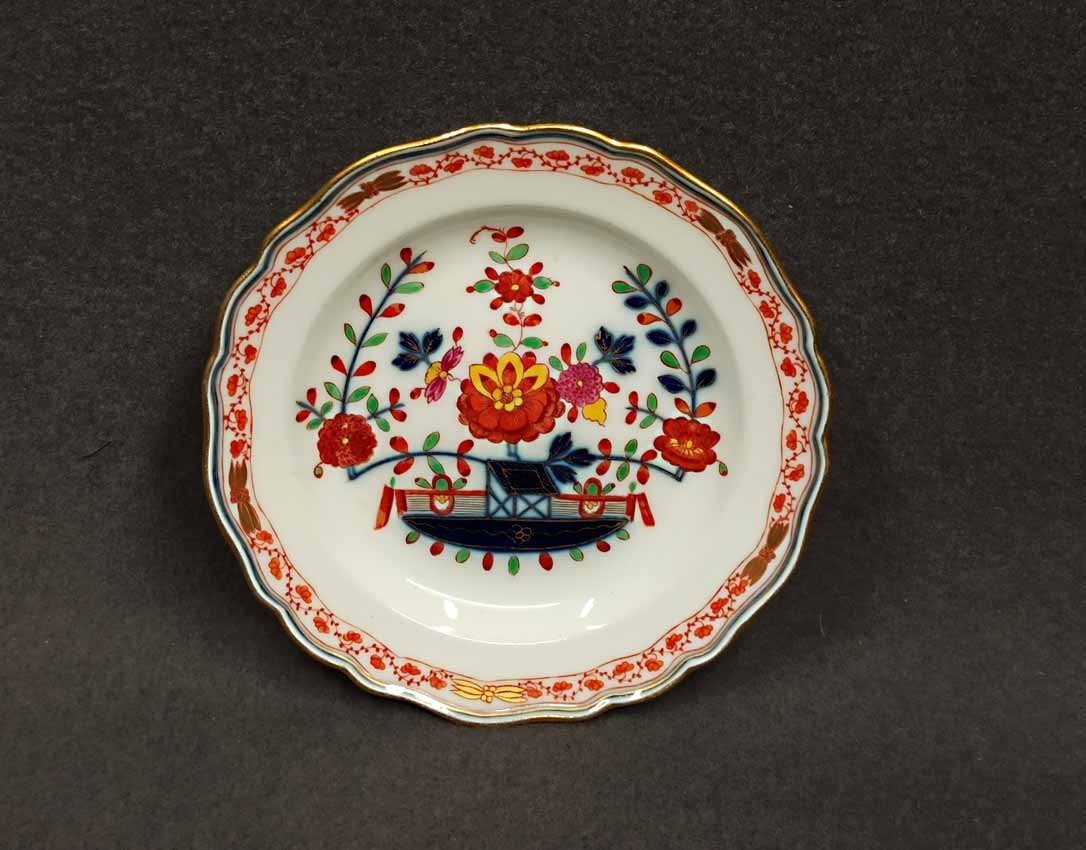 Meissen, Teller, Dekor Tischchenmuster, asiatische Malerei. Kleiner Speiseteller um 1880. D. 19 cm, 1. Wahl. Schwertermarke mit Knaufgriffen 1860 - 1924, Marke ohne Schleifstriche 1. Wahl. Zustand ohne Beschädigungen, keine Chips oder Abplatzer. Rs. alte Sammleretiketten.