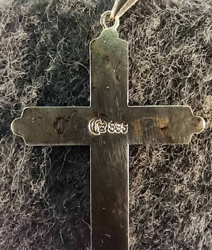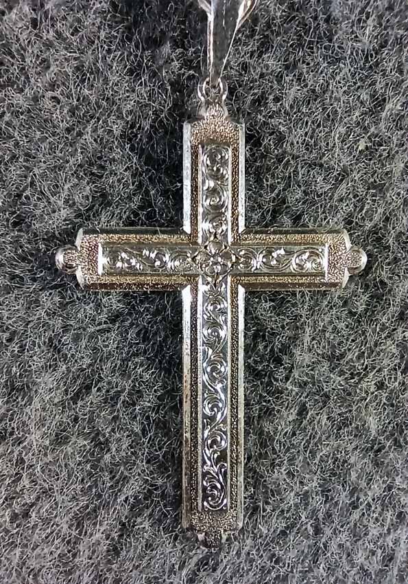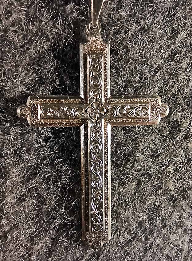 Kreuz, Anhänger mit Kette, ziseliert, Silber 835er