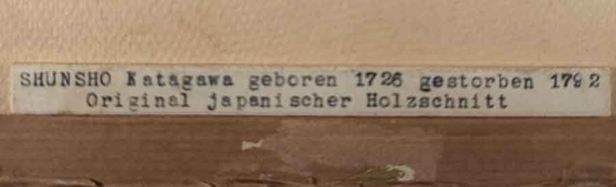 Wikipedia: Katsukawa Shunshō (jap. 勝川 春章; * 1726[Anm. 1]; † 19. Januar 1793 in Edo (heute: Tokio)) war ein japanischer Holzschnittkünstler und Maler im Stil des Ukiyo-e sowie Begründer der Katsukawa-Schule.