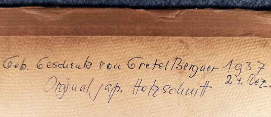 Abbildung 24,5 x 14,5 cm. Zustand mit Läsuren, geringe inaktive Anobienspuren außerhalb der Darstellung. RS. alte Bezeichnung/Zuordnung und Widmung vom 24.12.1937 auf dem Trägerkarton.