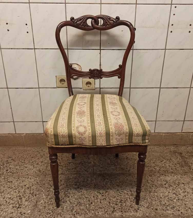 Stuhl, Biedermeier um 1840, Mahagoni. H. 48/92 cm