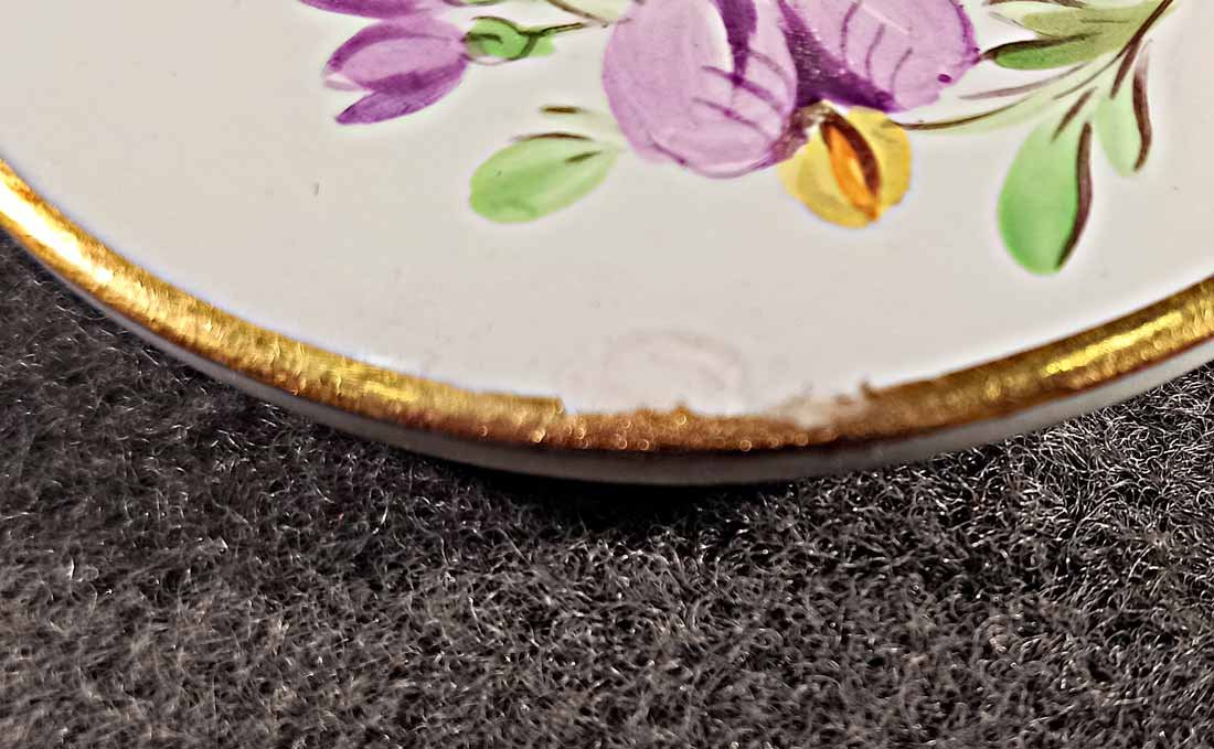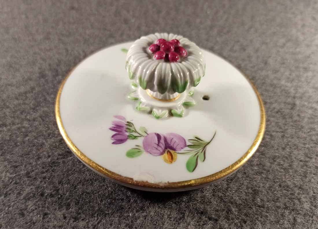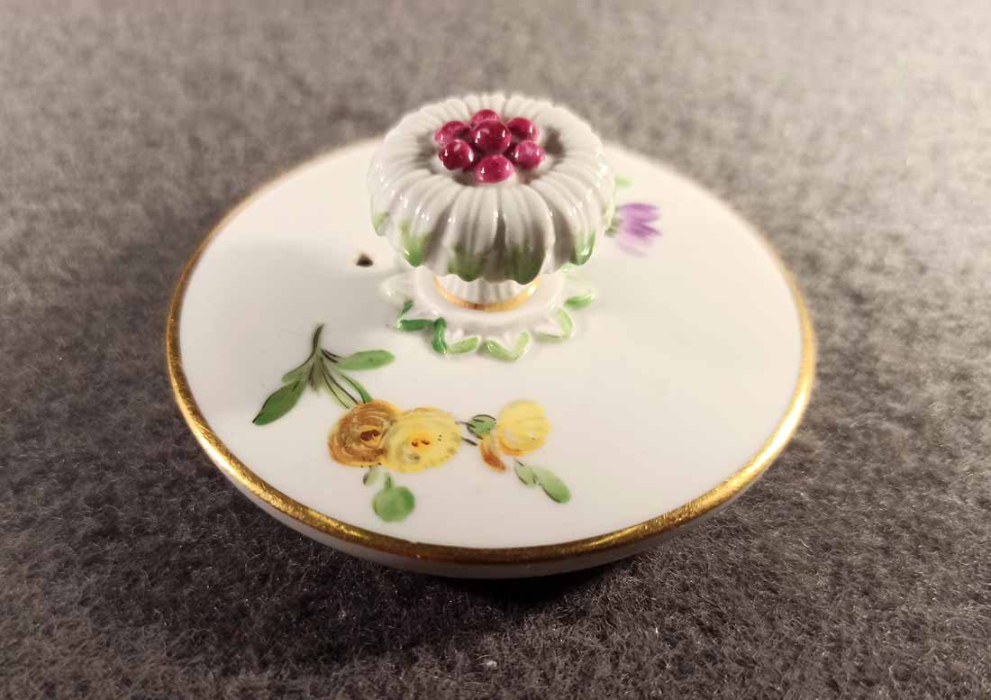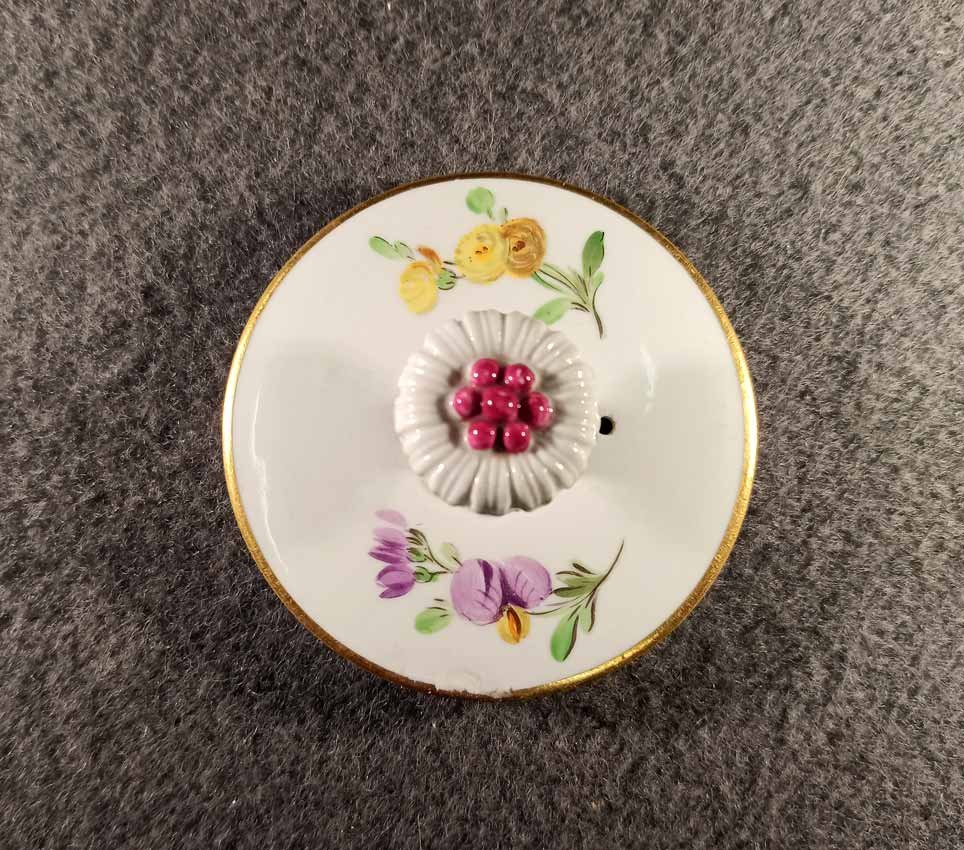 Meissen, Deckel mit Blumenmalerei, klassizistisch Ende 18. - Anfang 19.Jh. Alt reparierter Randchip. D. 7 cm,  Innenring5,5 cm, H. ca 2,5 cm
