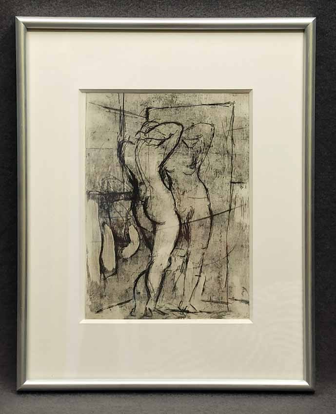 Beate Bilkenroth, Akt vor Spiegel , Radierung 1993. Re.u. sign.: "Bilkenroth 93". Gerahmt im Passepartout. H.xB. 19/31 cm x 14/25 cm