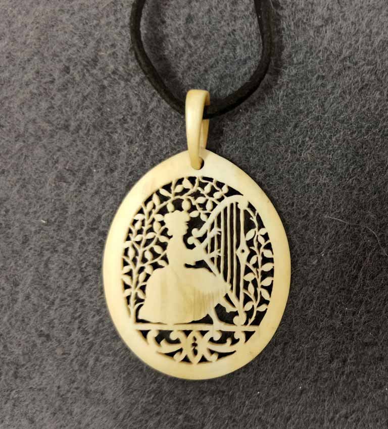 Anhänger, (Elfen-)Bein, Harfenspielerin