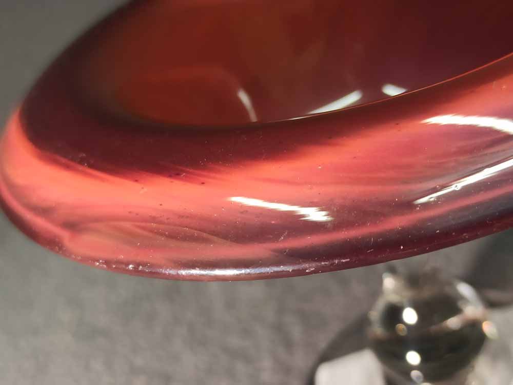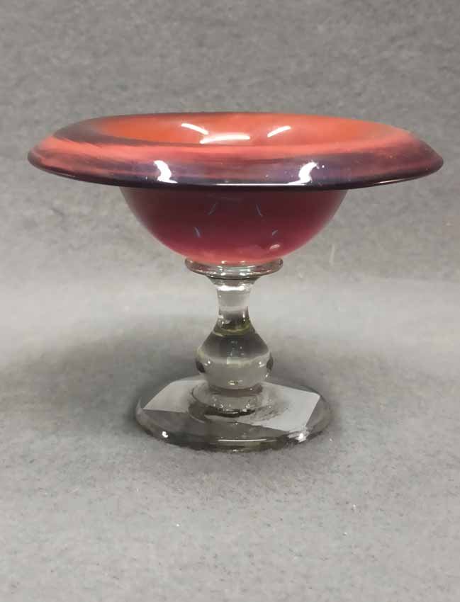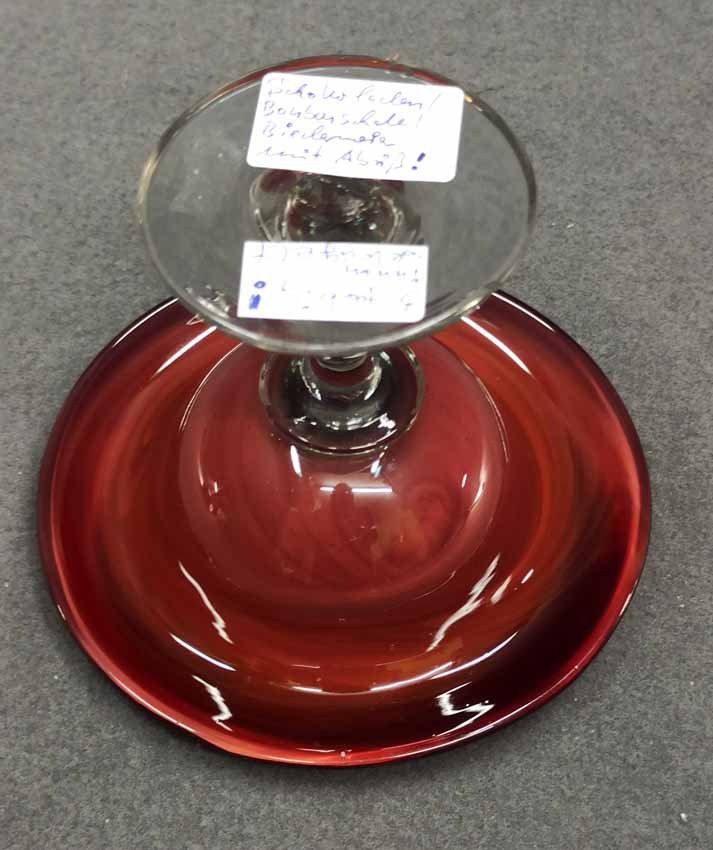 Steinglas, Biedermeier Schale, farbige Fußschale 1.H.19.Jh. Abriss