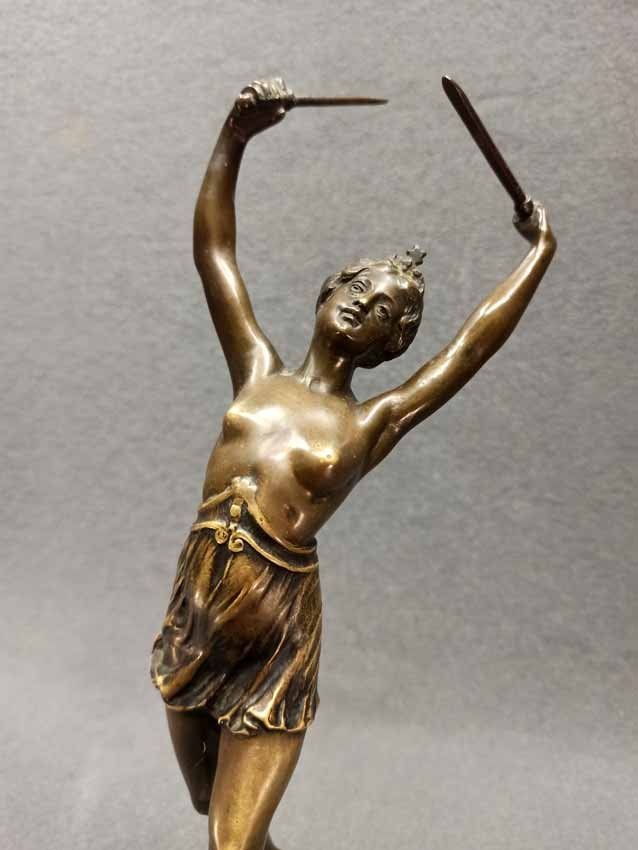 Otto Hoffmann, "Schwerttänzerin", Bronze Plastik. Frühes 20.Jh. Auf  der Plinthe sign. "Hoffmann". H. 27 cm mit Sockel 32 cm.