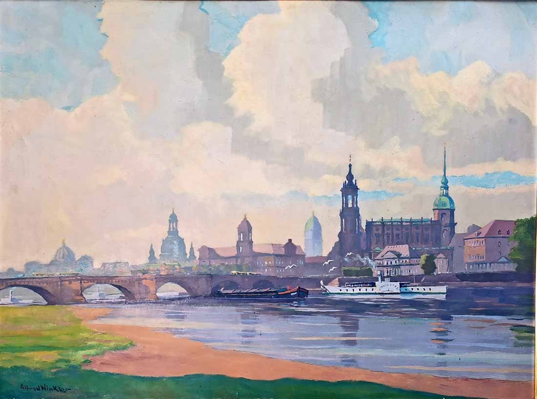 Winkler, Alfred; "Dresden", Tempera auf Hartfaser, B. 78/93 cm, H. 59/74 cm.