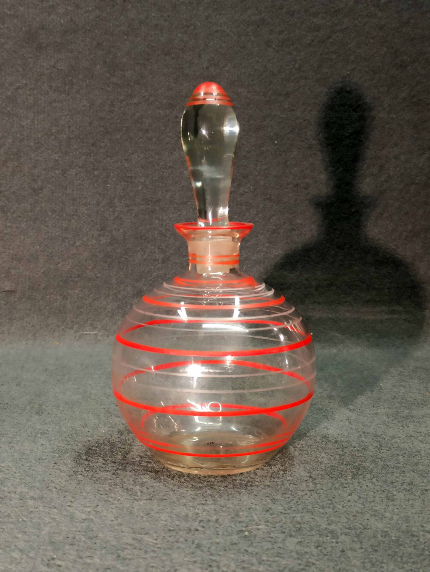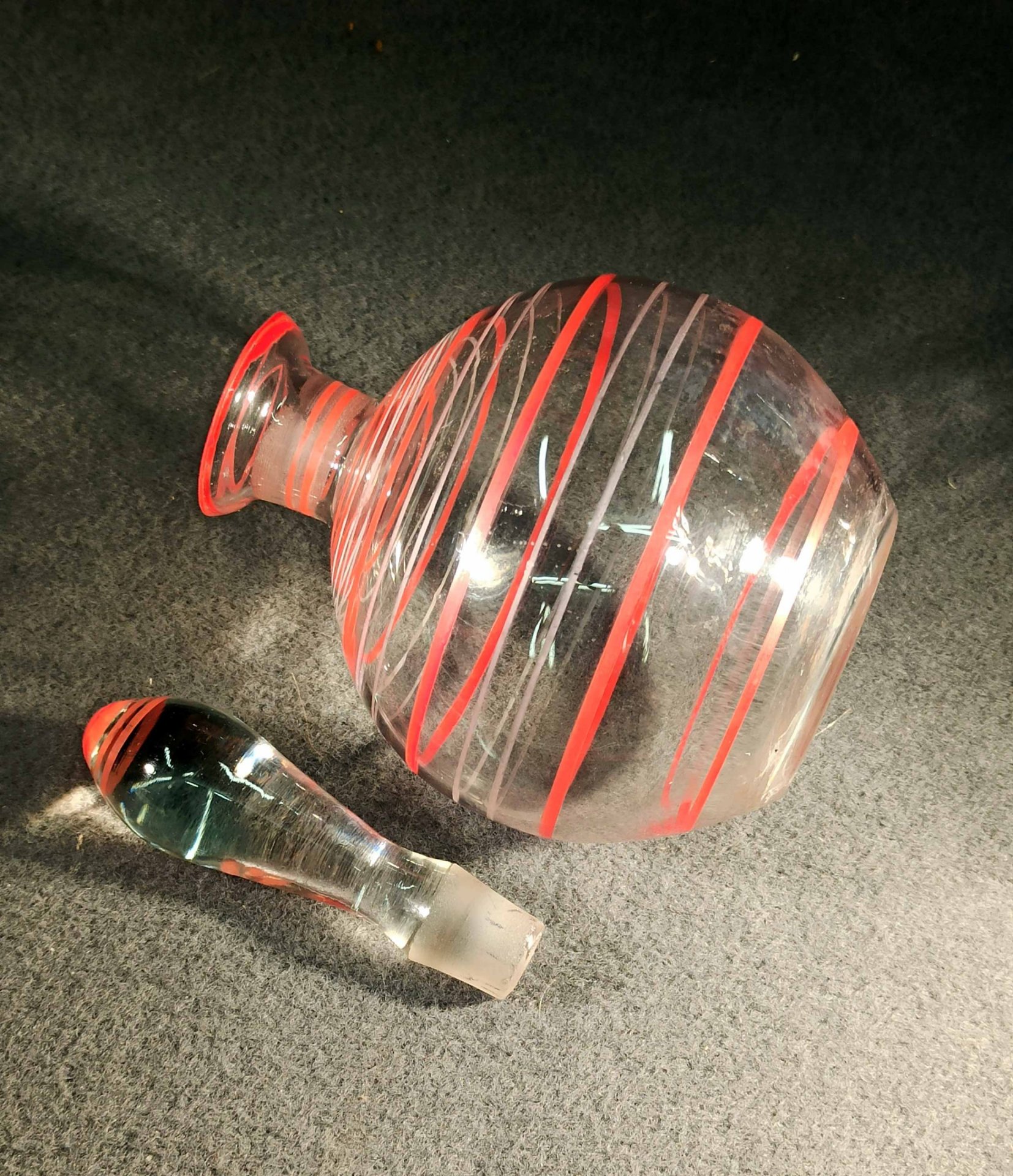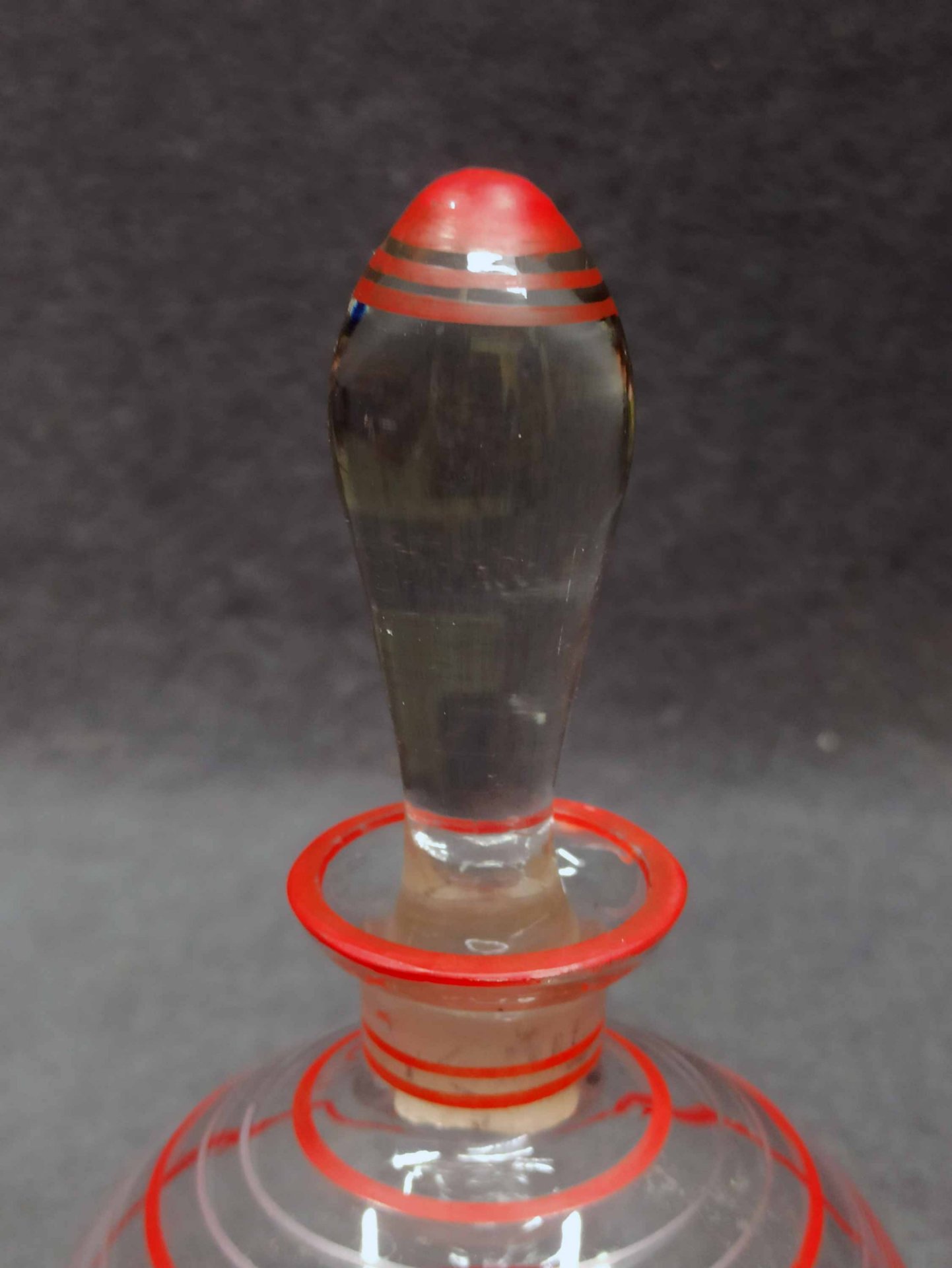 Karaffe mit Emailledekor, um 1930 bis 50er Jahre. Sehr guter Zustand ohne Beschädigungen. H. 20 cm.