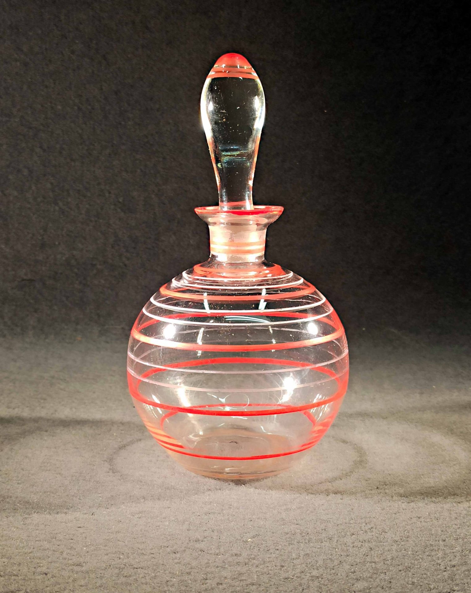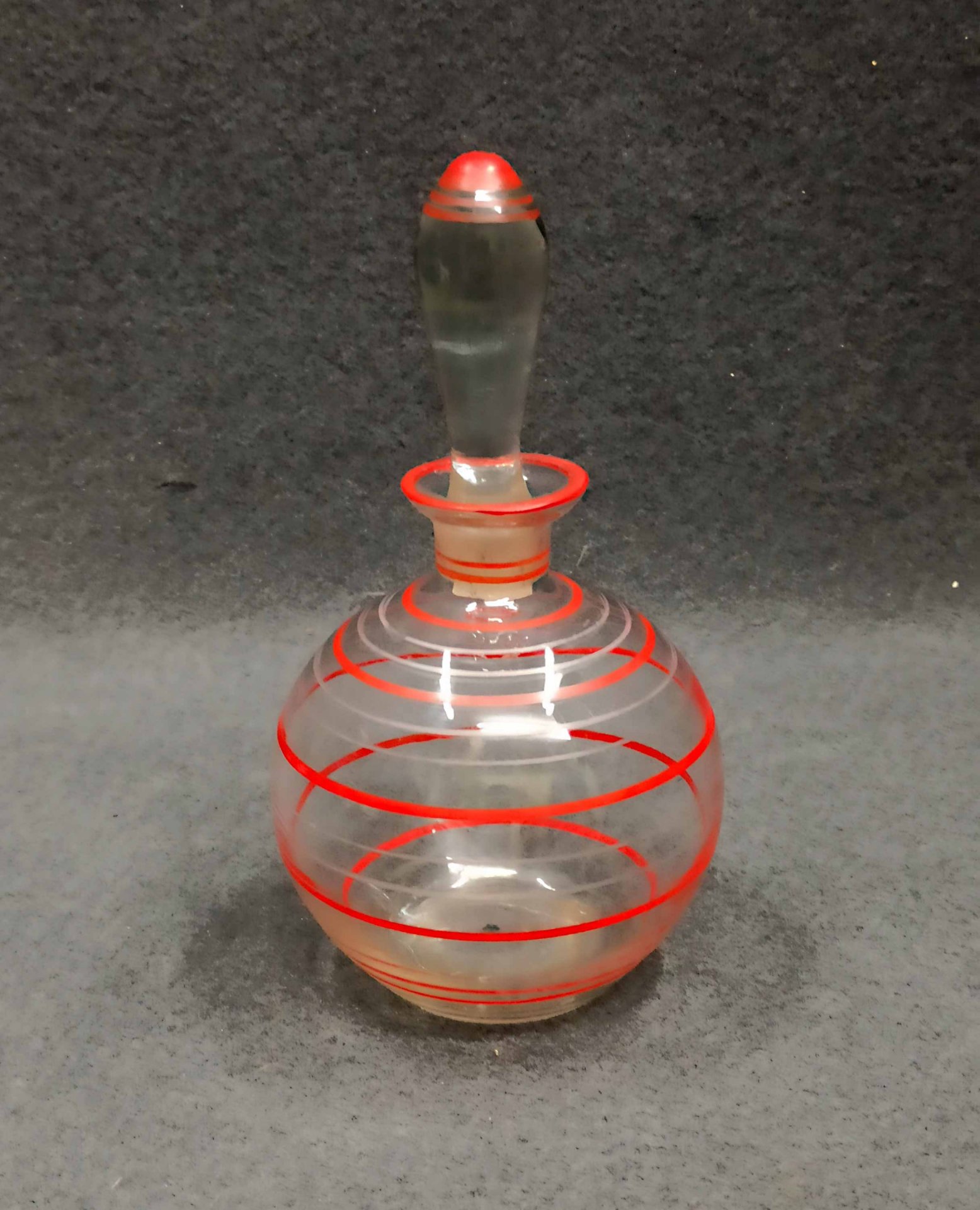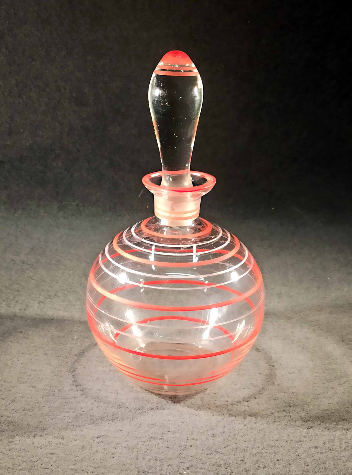 Karaffe mit Emailledekor, um 1930 bis 50er Jahre. Sehr guter Zustand ohne Beschädigungen. H. 20 cm.
