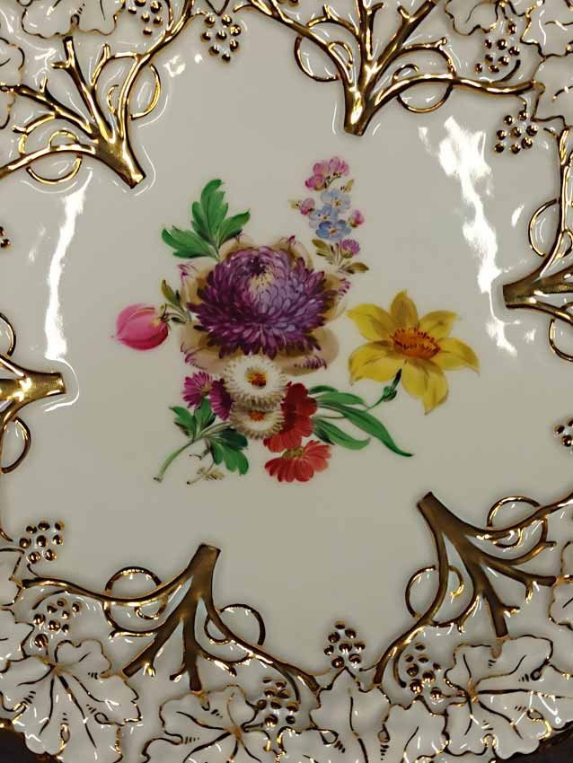 Meissen, Prunkschale, Blumenmalerei und Goldrelief um 1880