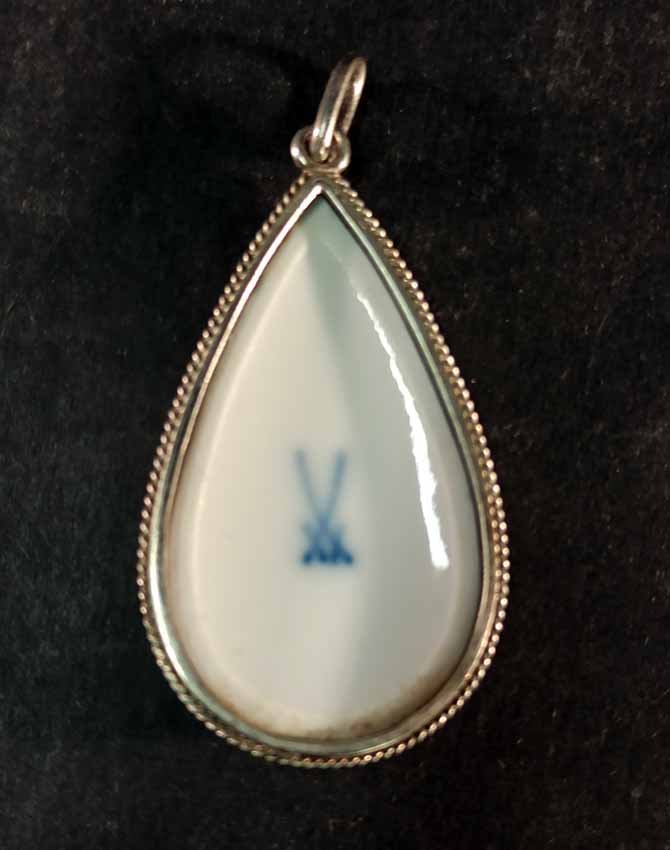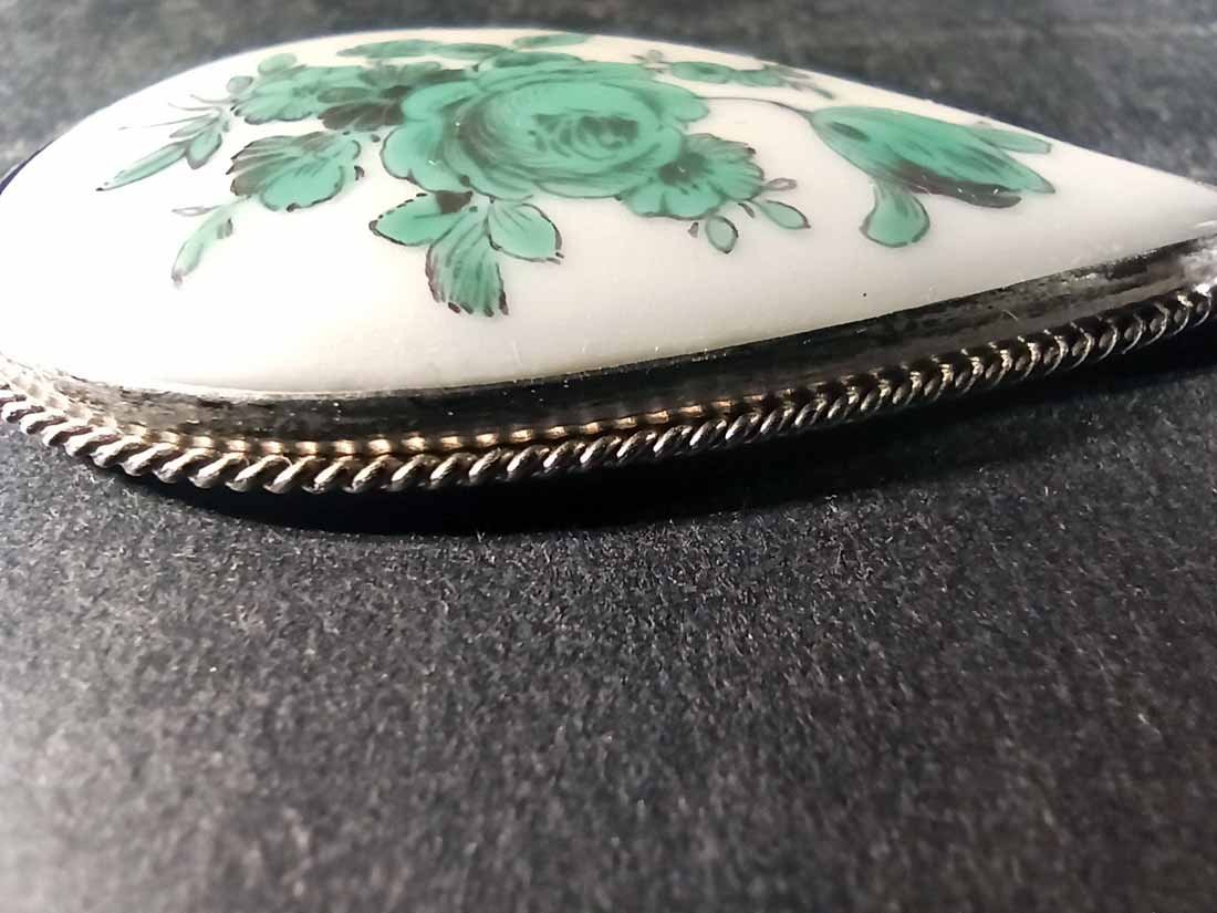 Meissen, Porzellan Anhänger, Silber gefasst, Blumenmalerei in Grün