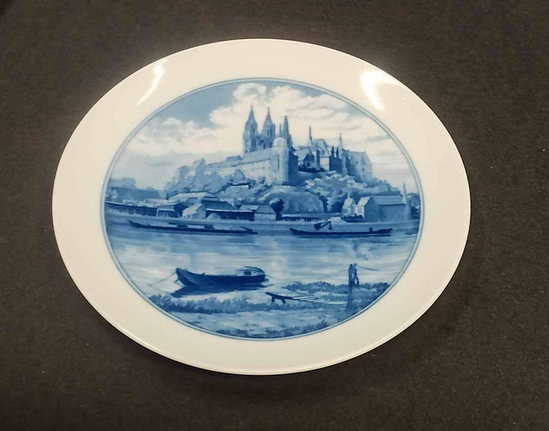Meissen, Wandteller mit Ansicht von Meissen "Albrechtsburg über die Elbe". D. 25,5 cm. Sehr guter Zustand. Schwertermarke, 2x gestrichen. Rs. Wandaufhängung.