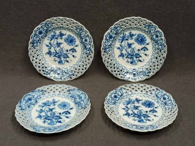 Meissen Teichert, 4x Teller Zwiebelmuster mit Flechtrand., kl. Dessertteller
