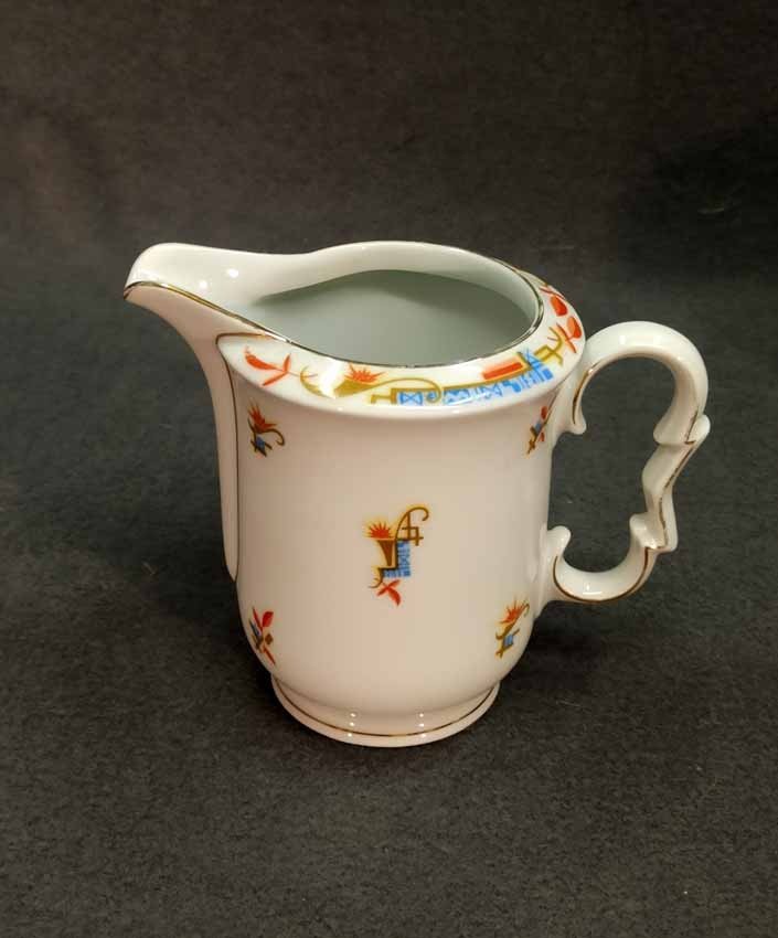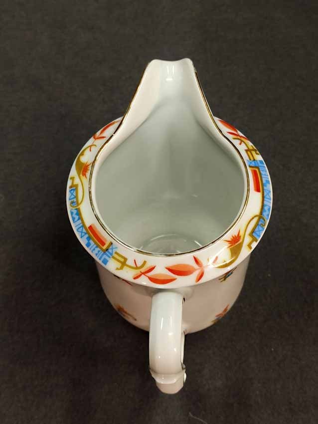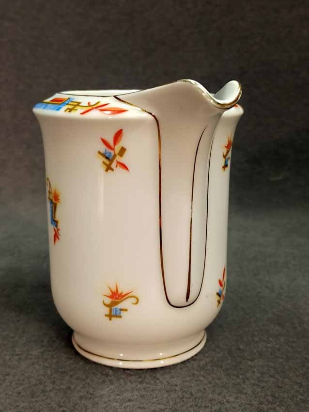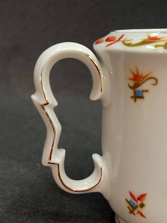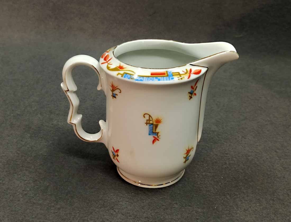 Kännchen, Art Deco, mit exzeptionellem Design in Form und Dekor. H. 13 cm. Guter Zustand ohne Beschädigungen, etwas Goldabrieb. Gemarkt: "KPM" (nicht KPM Berlin).