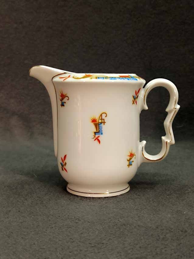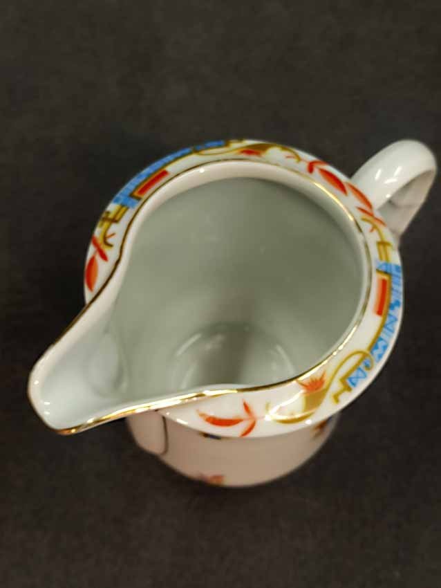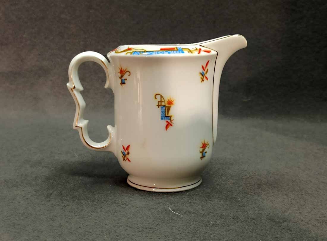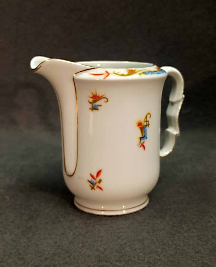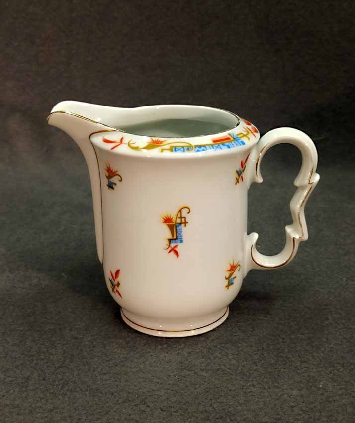 Kännchen, Art Deco, mit exzeptionellem Design in Form und Dekor. H. 13 cm. Guter Zustand ohne Beschädigungen, etwas Goldabrieb. Gemarkt: "KPM" (nicht KPM Berlin).